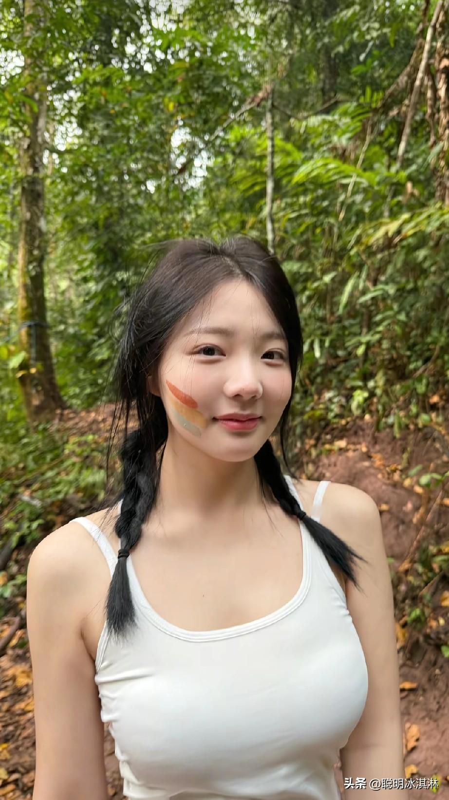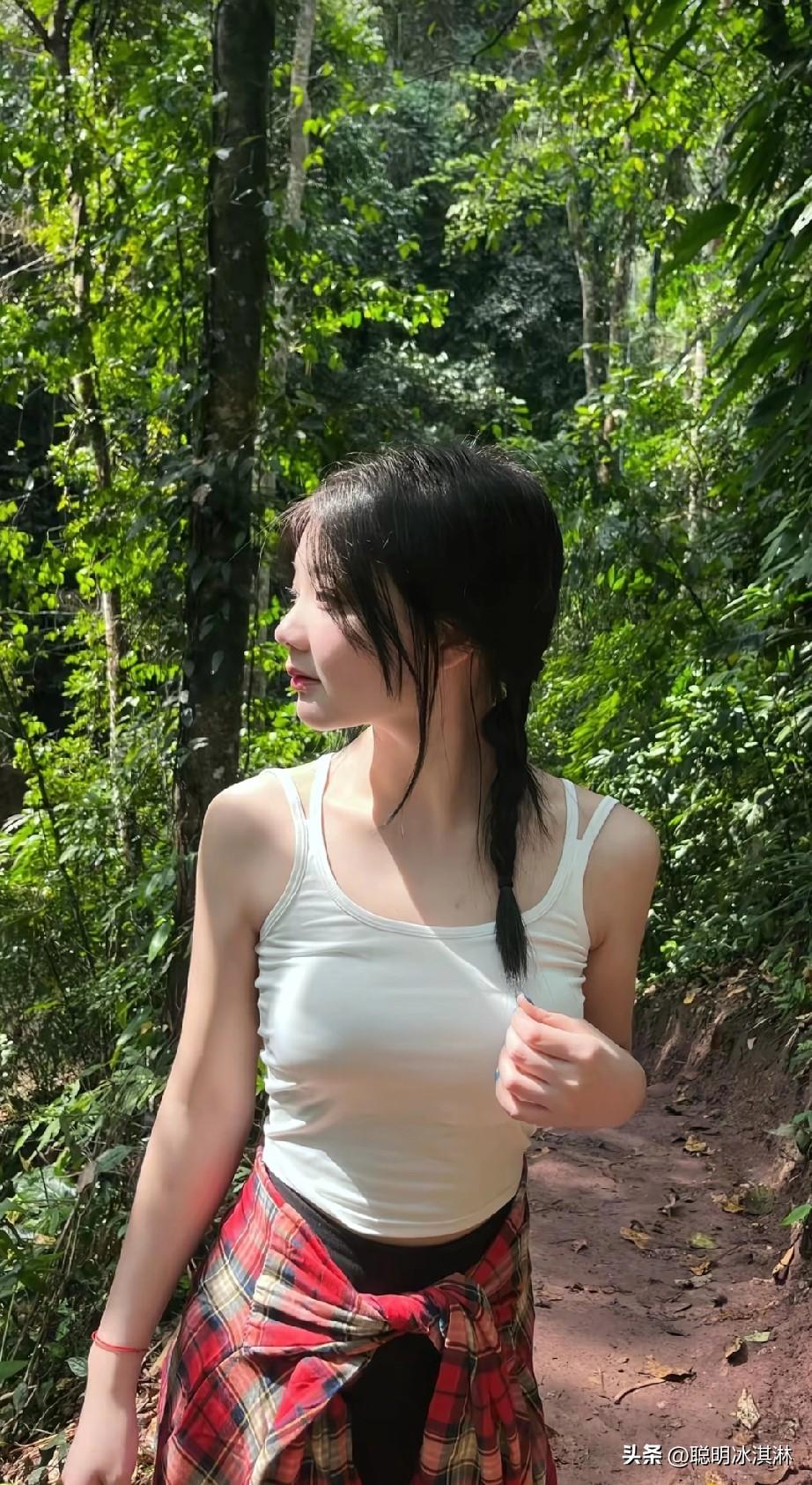森林小径上的清新少女,阳光洒满发梢,自然美如画。