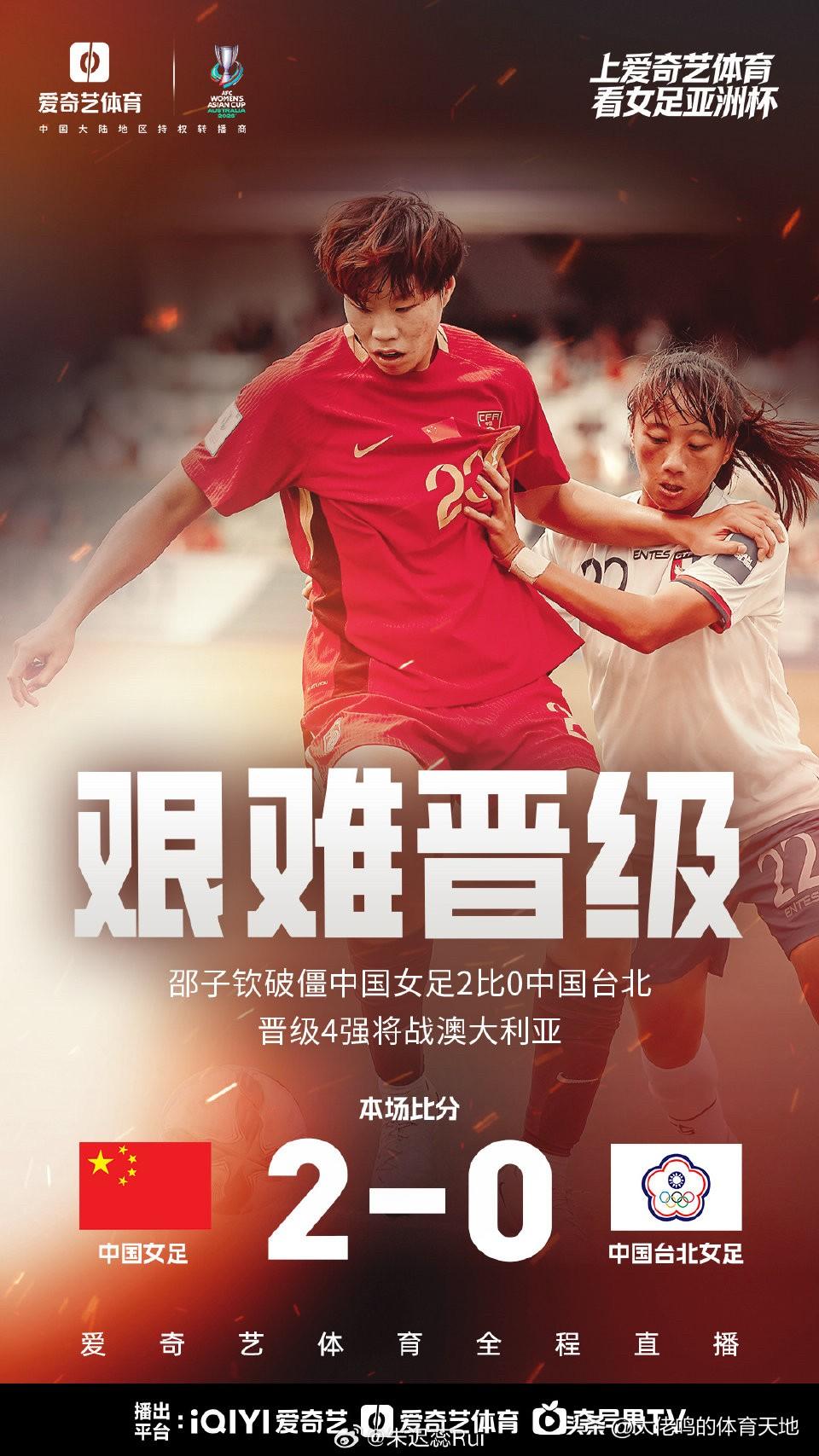 中国女足亚洲杯4强中国女足直通巴西世界杯恭喜中国女足,实至名归,不过这场踢省队也是大意了,居然要到加时赛才拿下,浪费了不少体力,实力上不应该,碾压获胜才是正道!下一场打澳大利亚更难,不过晋级世界杯就好,参赛目标顺路完成,期待更进一步[666]