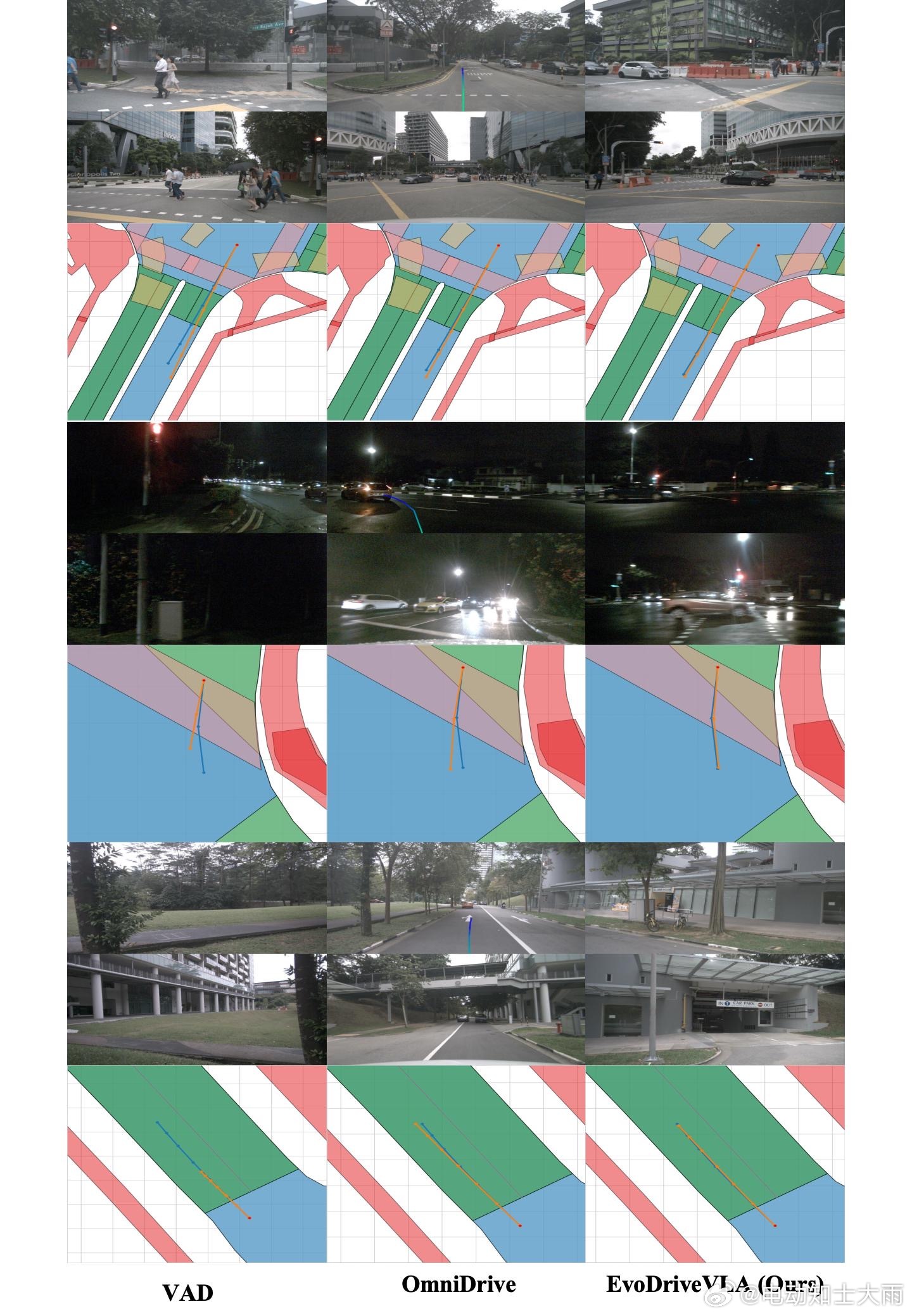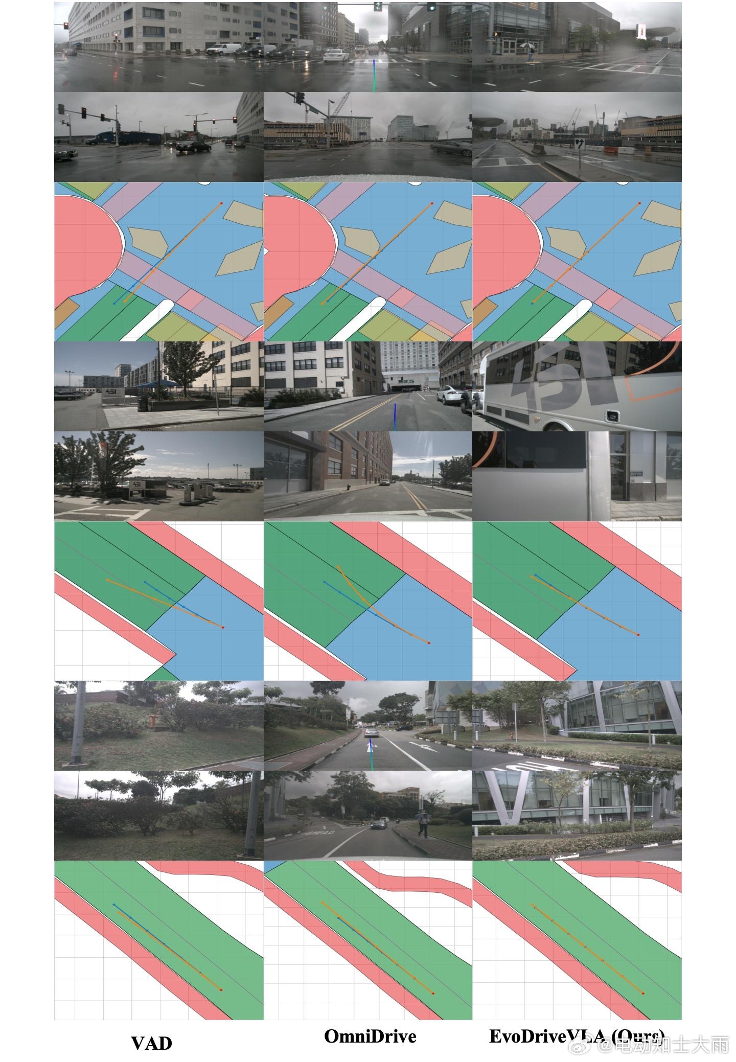 ▶nuScenes开环测试:相比OpenDriveVLA,路线误差降21%,碰撞率降40%相比DiMA,误差再降9%