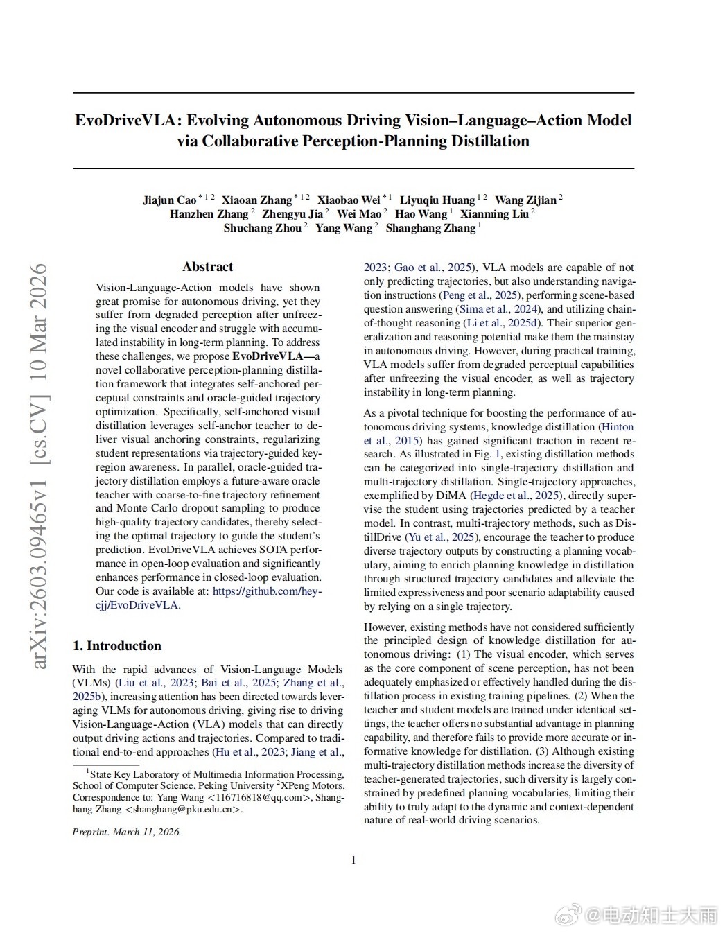 北大&小鹏汽车《EvoDriveVLA》论文,作者中出现了xianming,这套训练方法有点意思,给大家做个小总结: