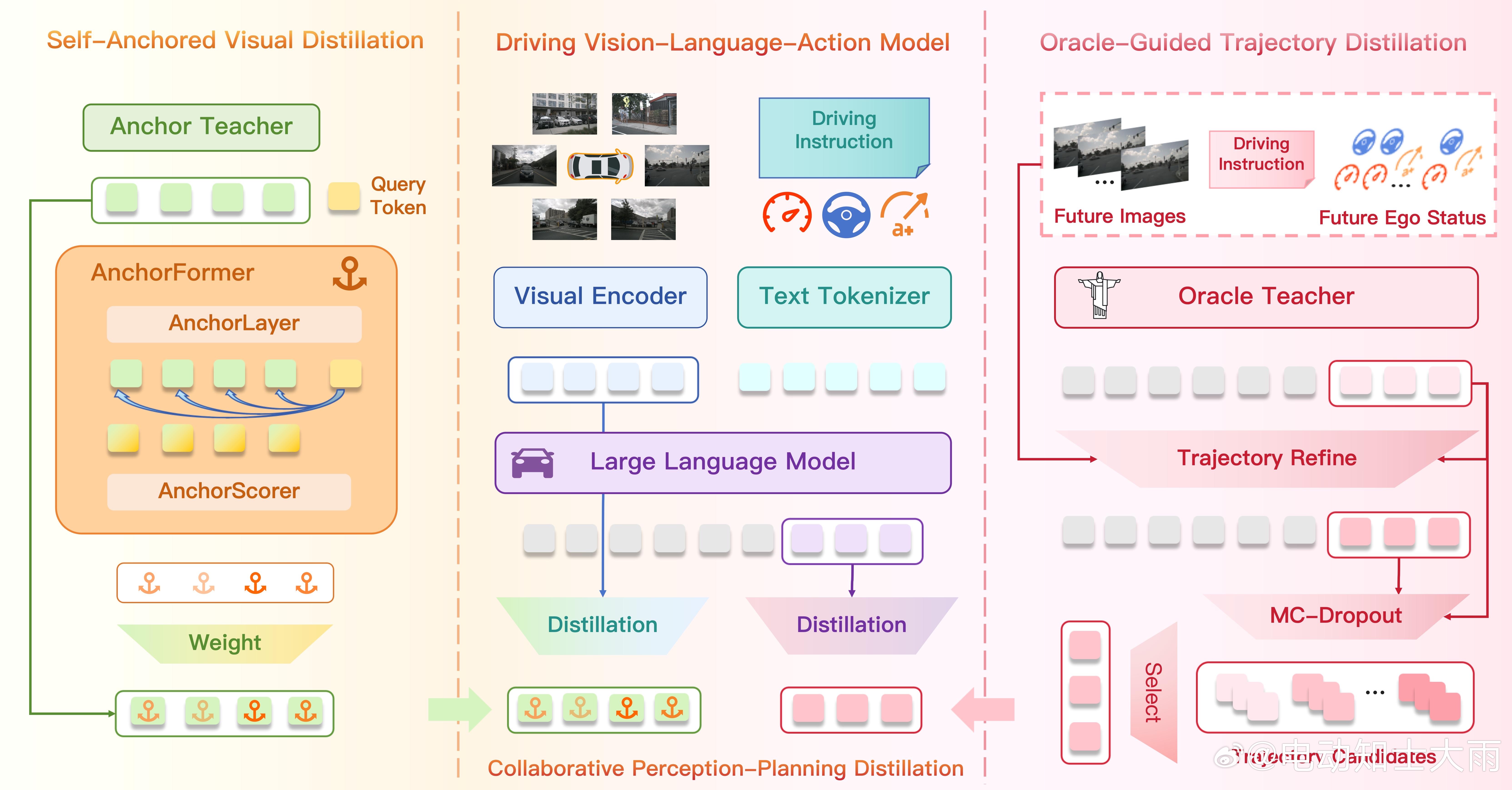 论文提出了VLA模型的"双师教学"方案:协同感知-规划蒸馏框架,让AI同时拜两个老师。