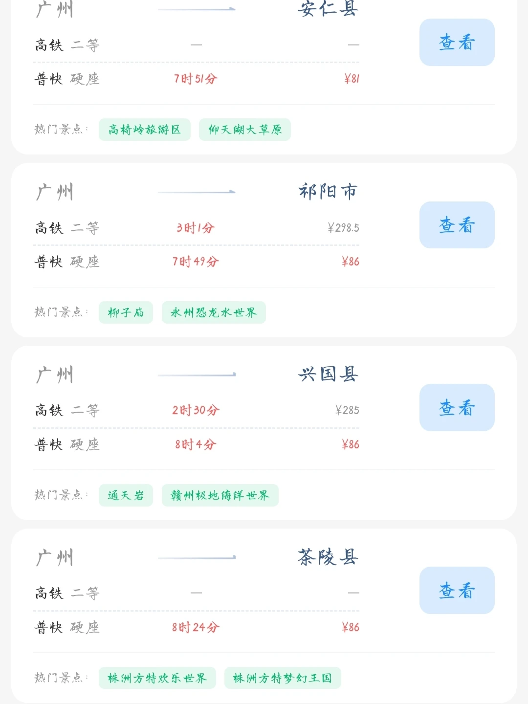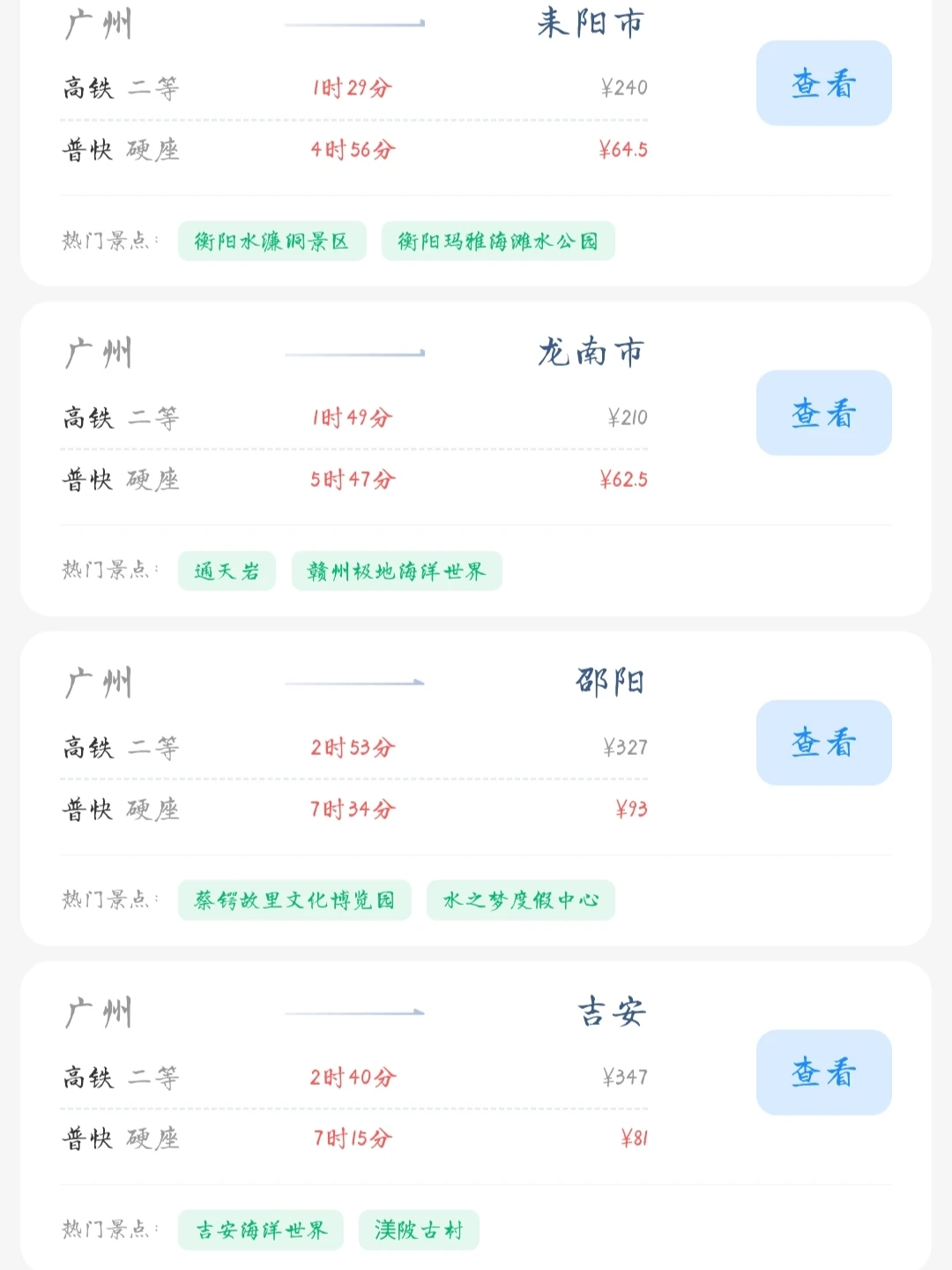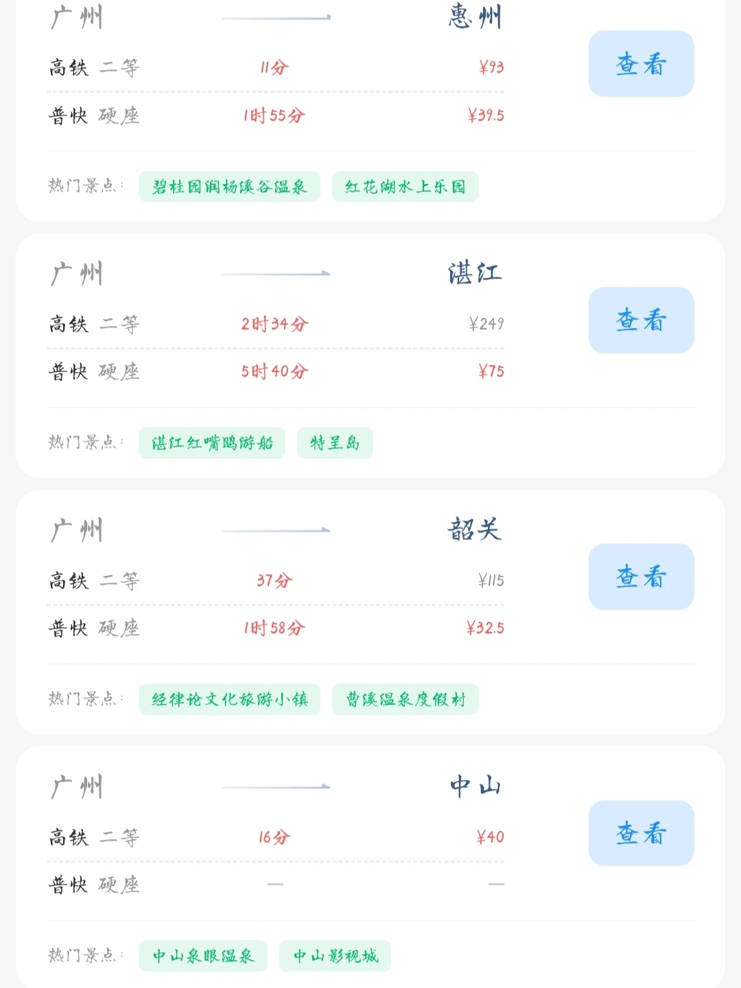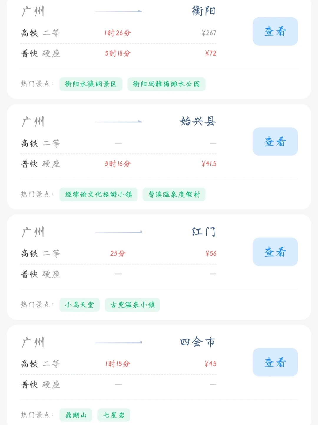 广州朋友们快看! 原来在广州100块的车票能去这么多旅游城市! 都帮大家整理好了放在这里啦[萌萌哒R]