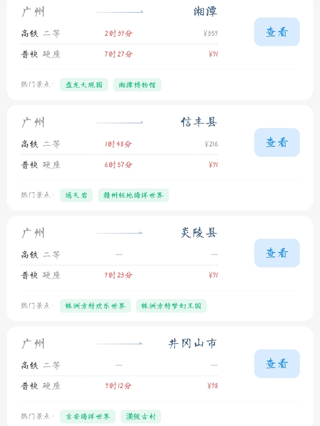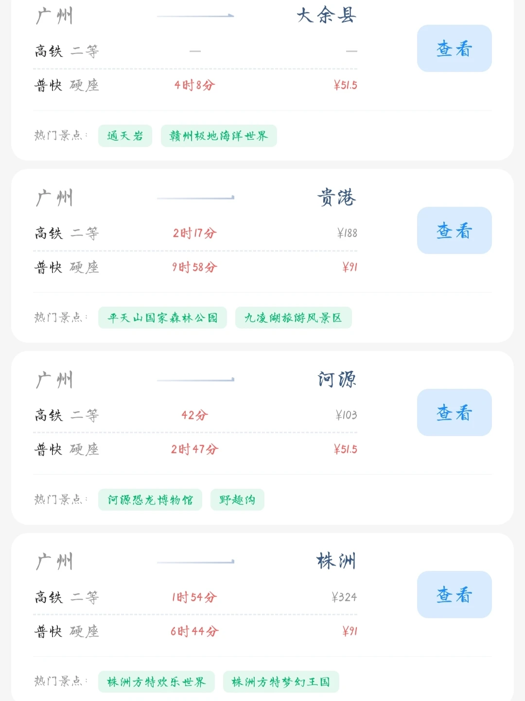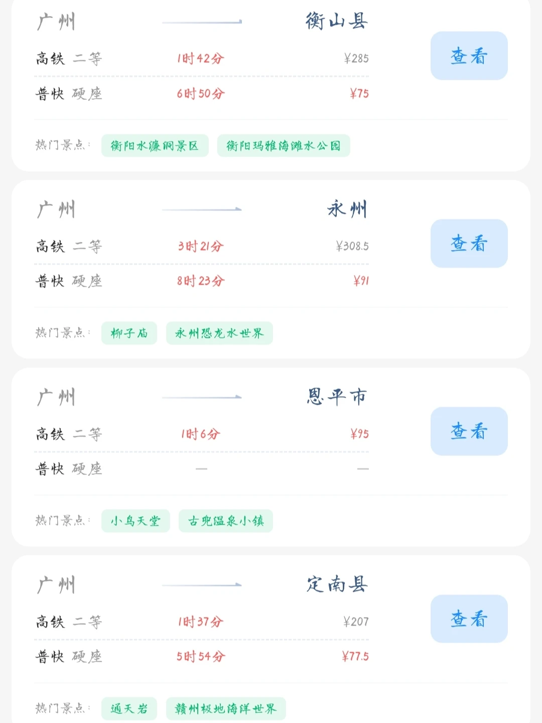 广州朋友们快看! 原来在广州100块的车票能去这么多旅游城市! 都帮大家整理好了放在这里啦[萌萌哒R]