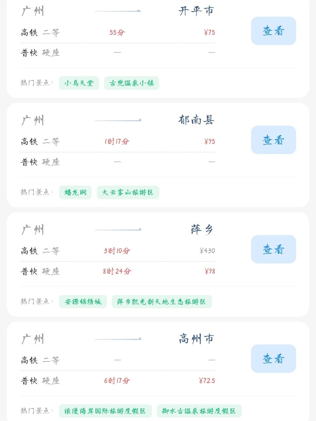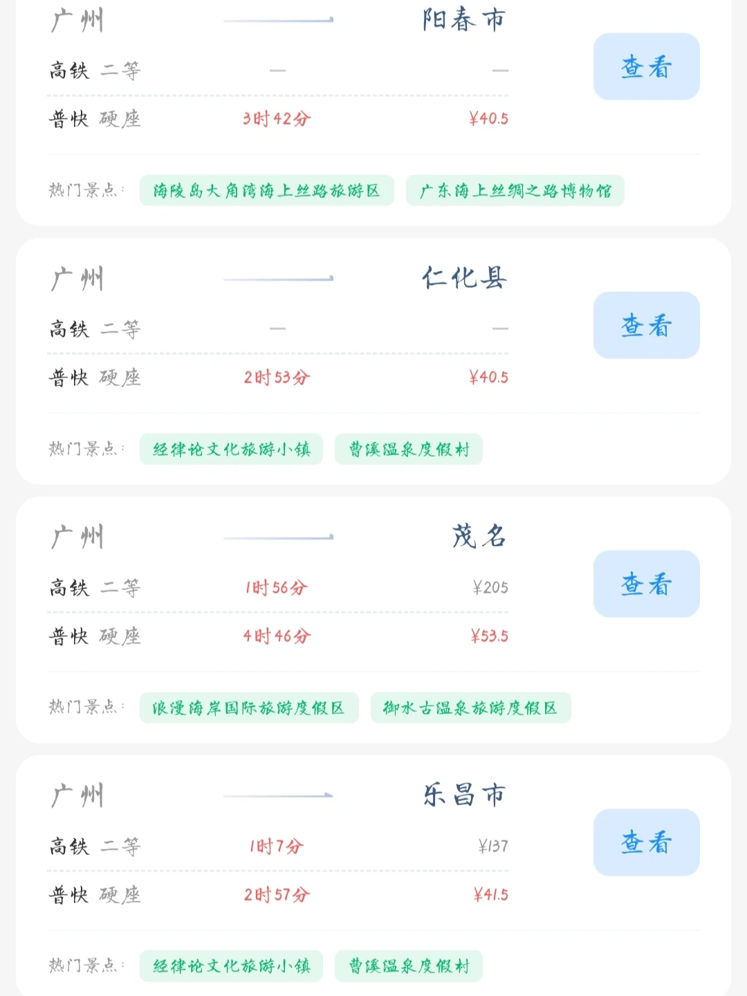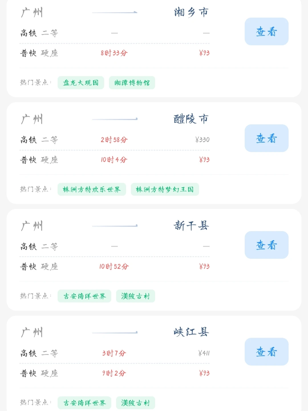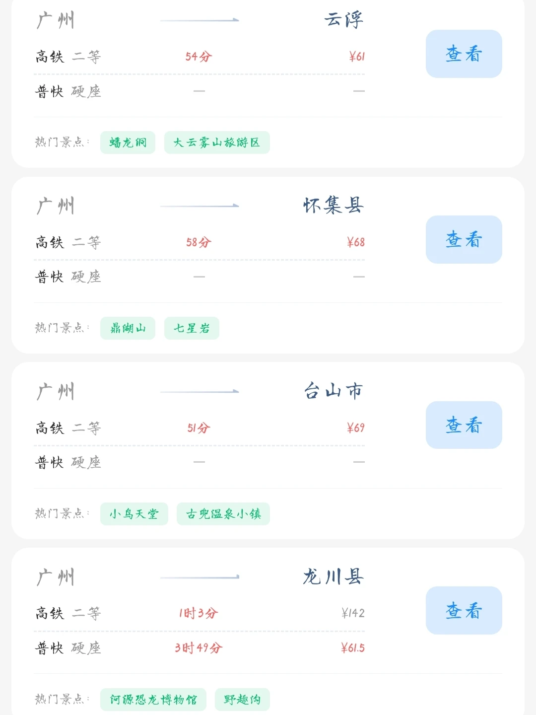 广州朋友们快看! 原来在广州100块的车票能去这么多旅游城市! 都帮大家整理好了放在这里啦[萌萌哒R]