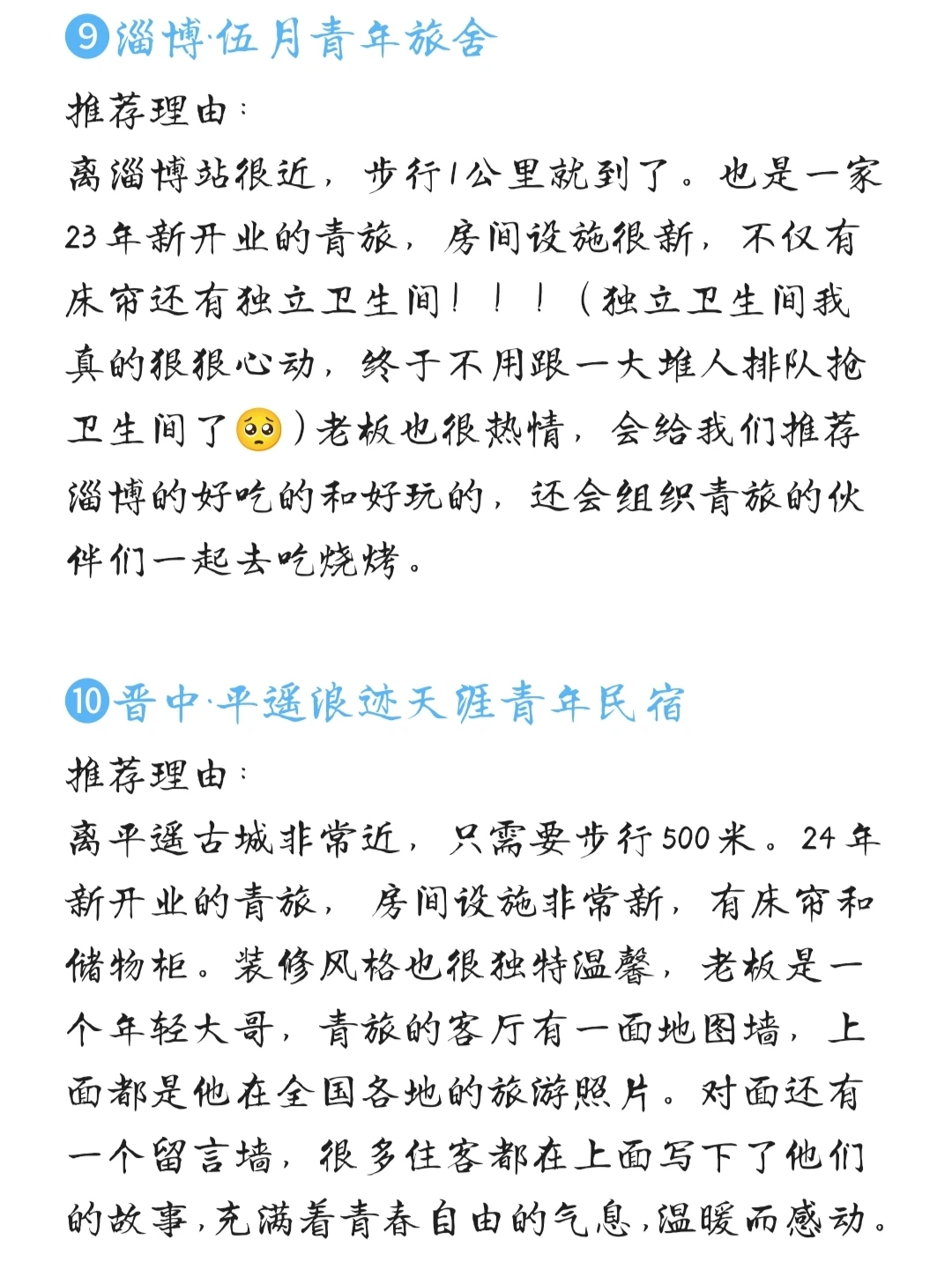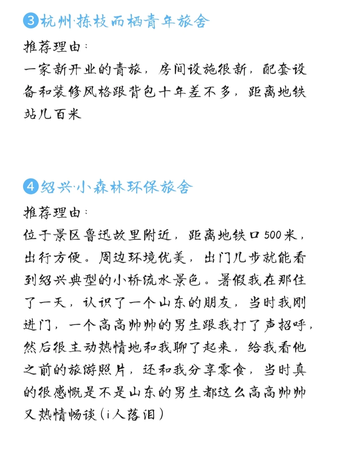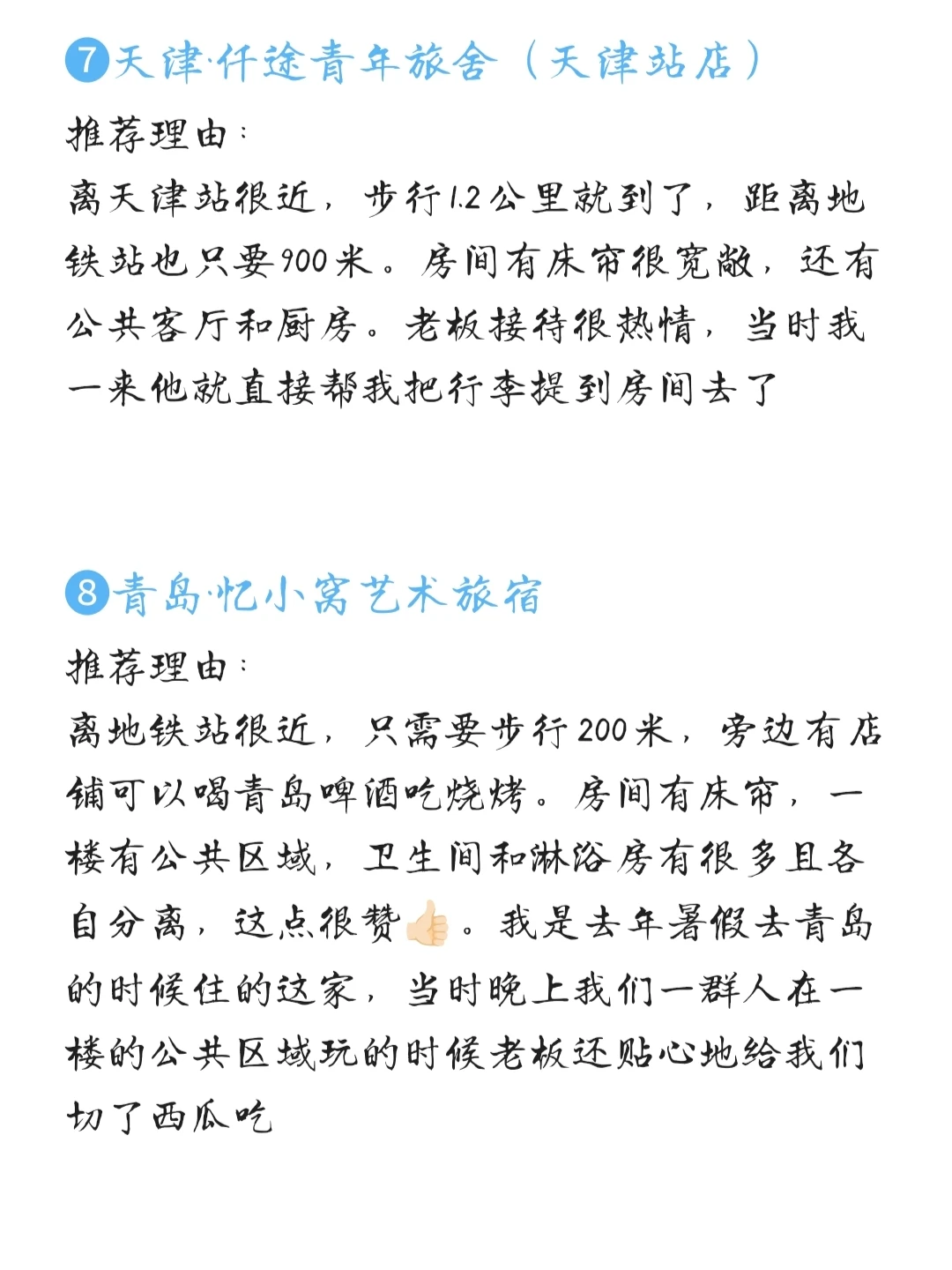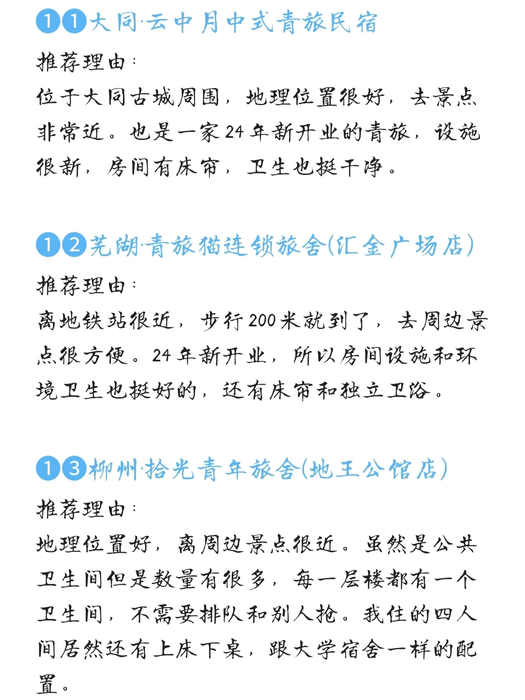 我会把我住过的比较好的青旅分享出来