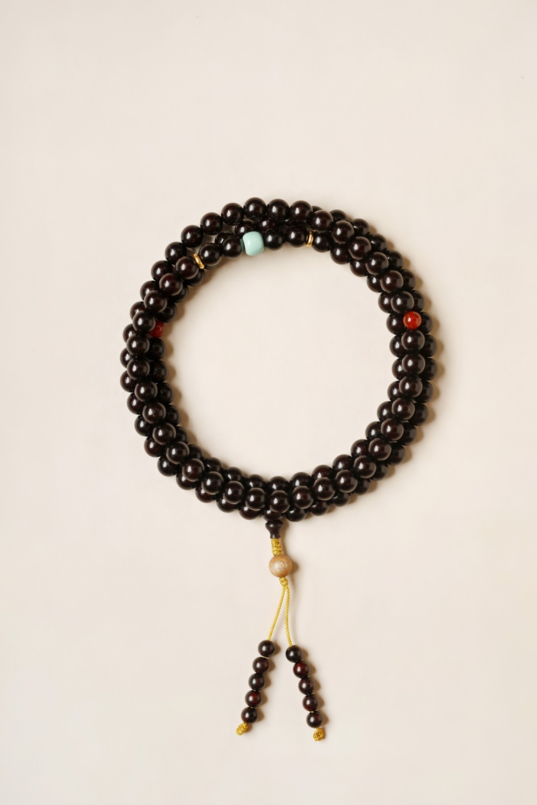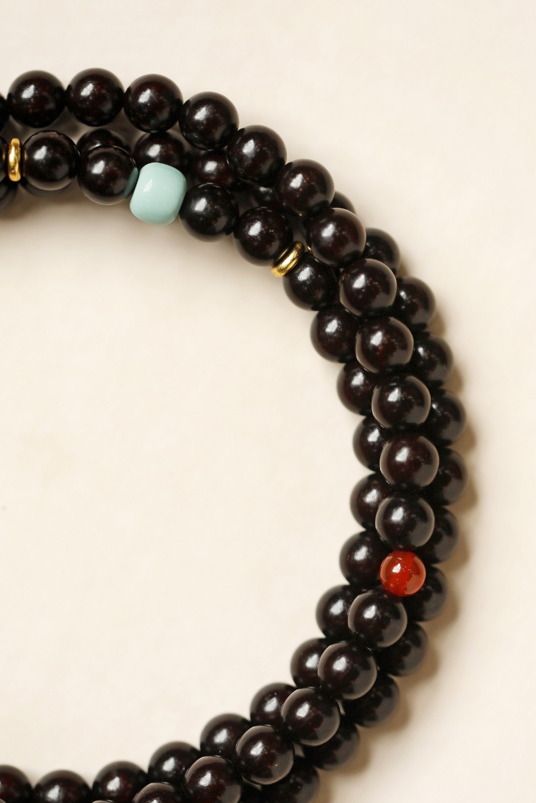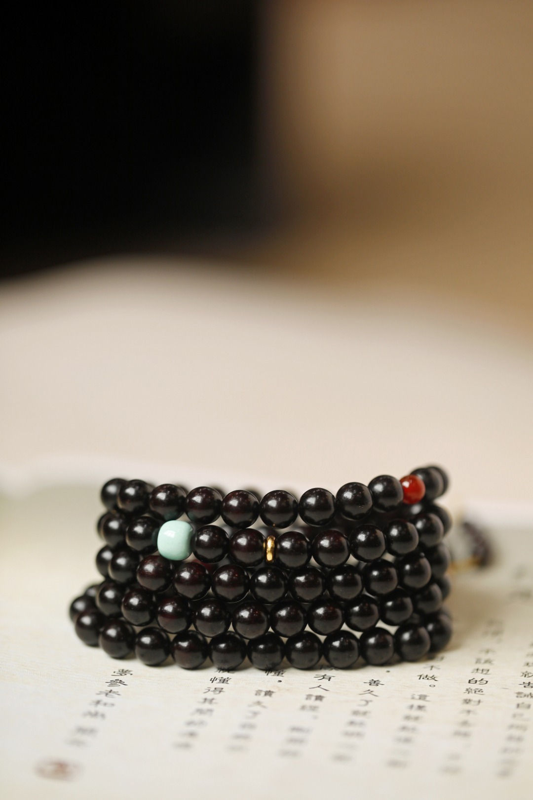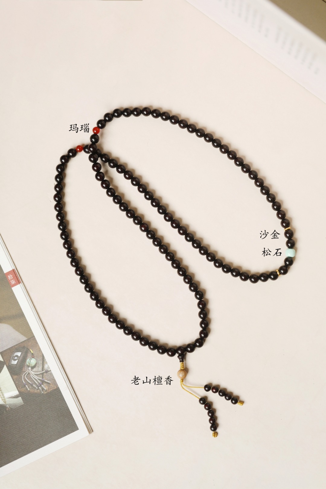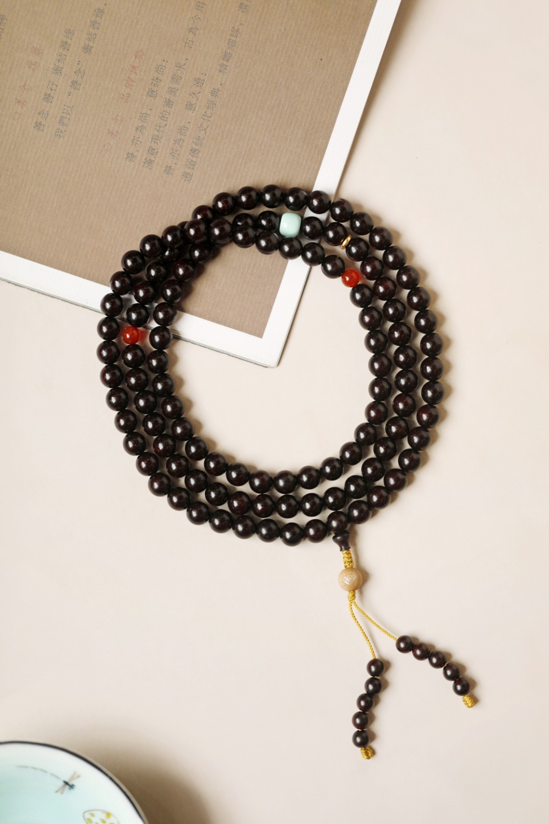 配件:松石、老山檀香、玛瑙、沙金 紫檀 8mm 108颗【墨羽】手串 念珠 佛珠