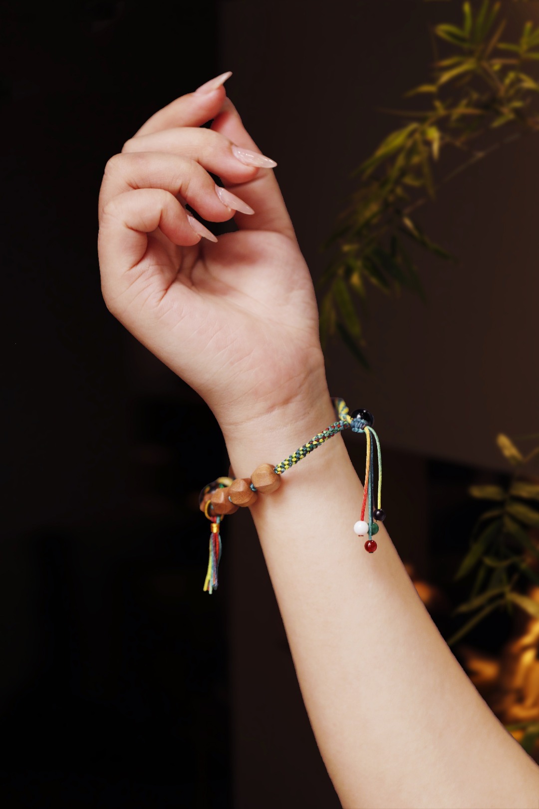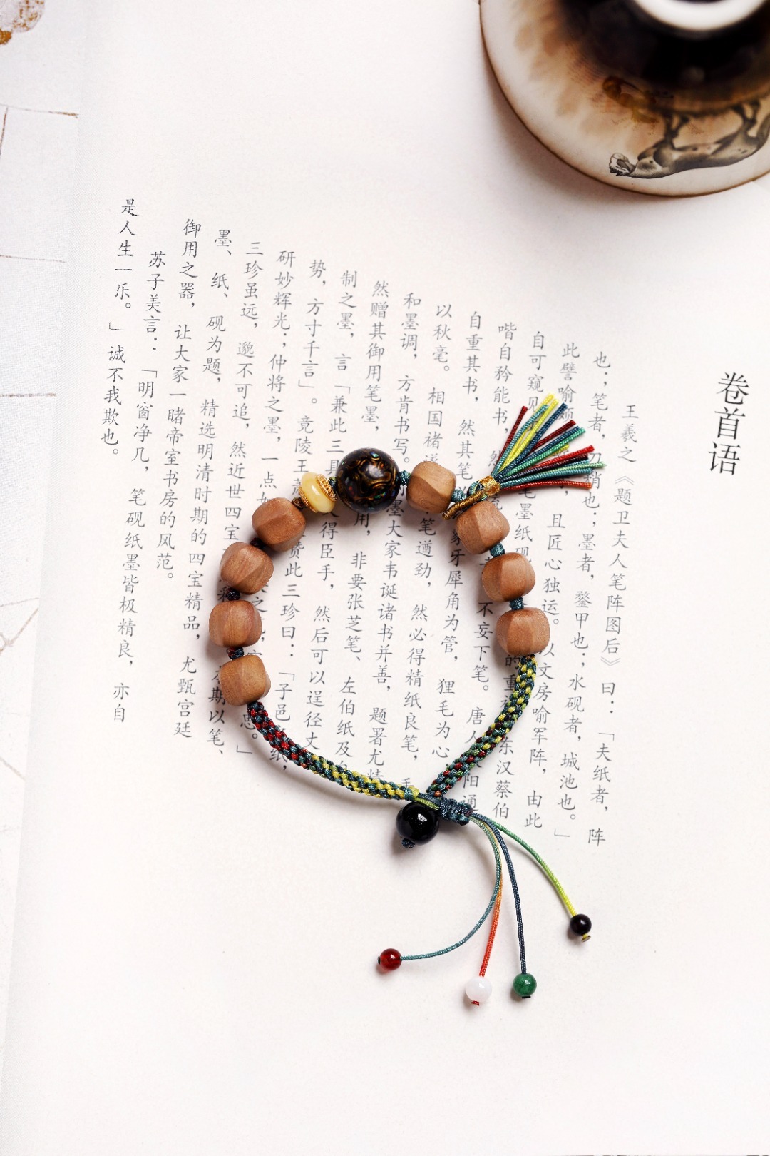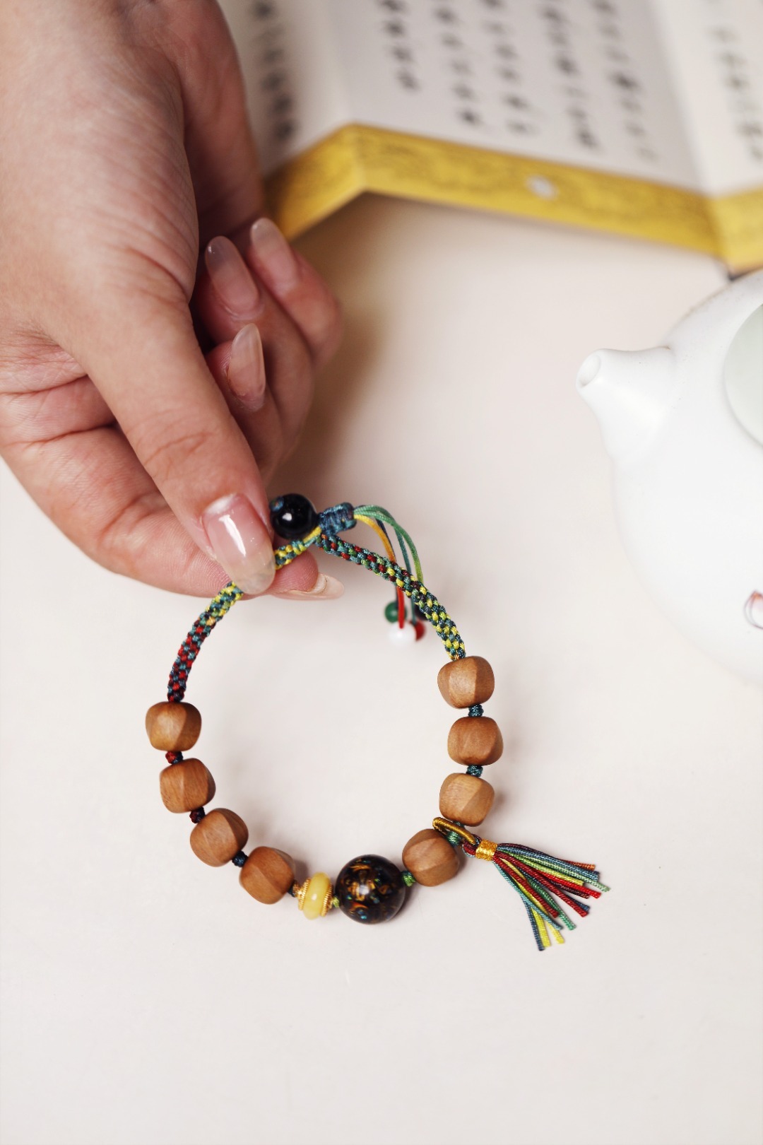 老山檀香,香韵迷人,搭配贝壳珠、玛瑙等配饰;把玩之间,香气浓郁透体,寓吉祥、平安健康。