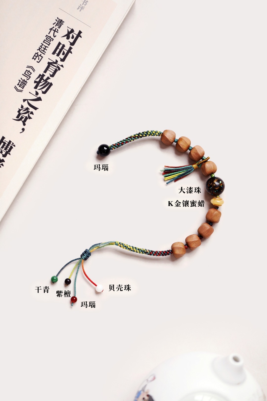 配件:大漆珠、贝壳珠、玛瑙、紫檀、玛瑙、K金镶蜜蜡、干青 老山檀香 原创【幼宜】9mm 手串