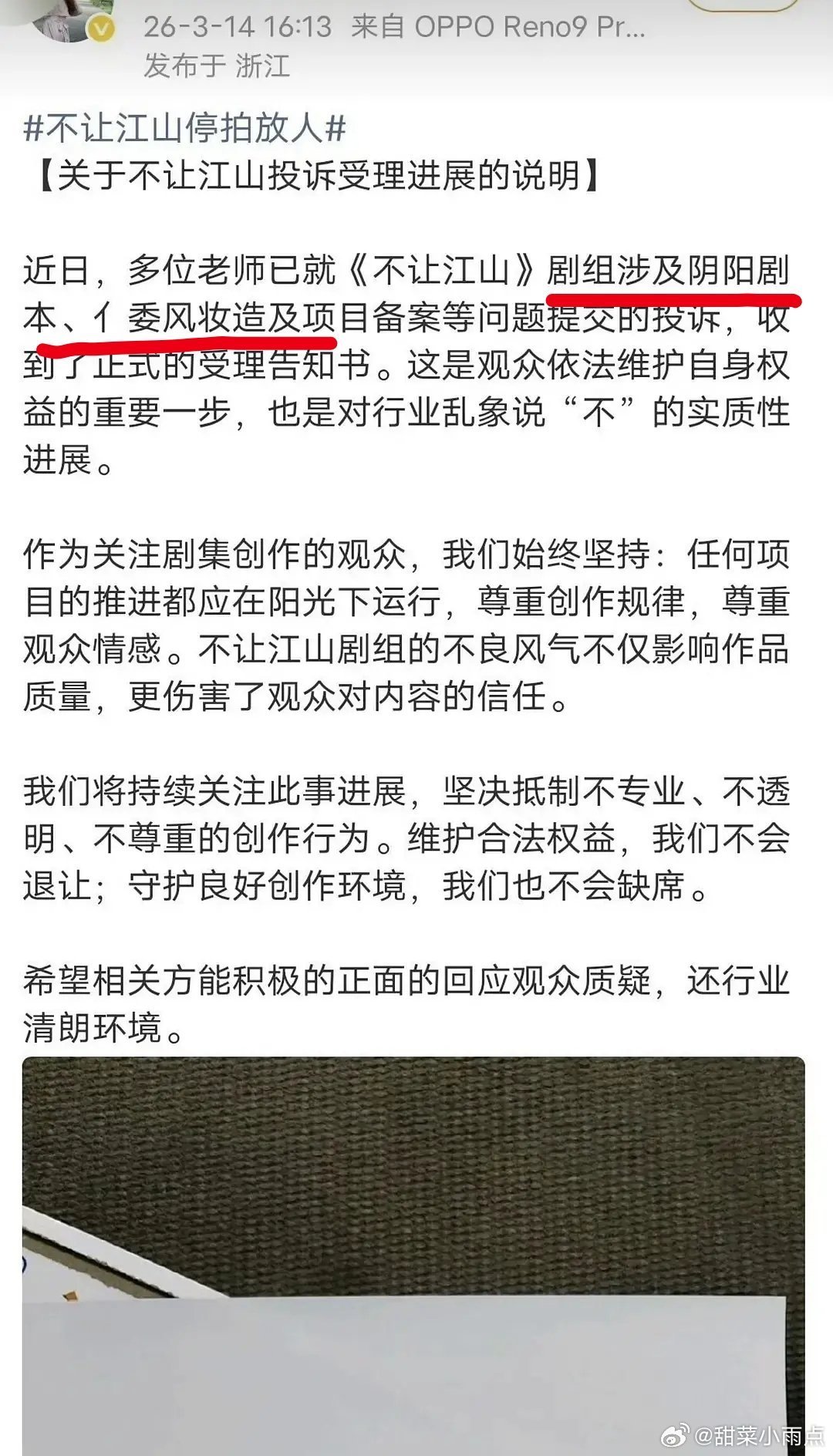 杨洋的《不让江山》危山东广电受理了杨洋粉丝对剧的投诉这要是聚宝成功整个剧都完了吧,以后还有剧敢跟杨洋合作吗
