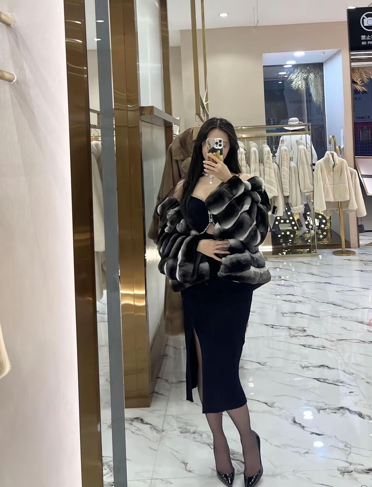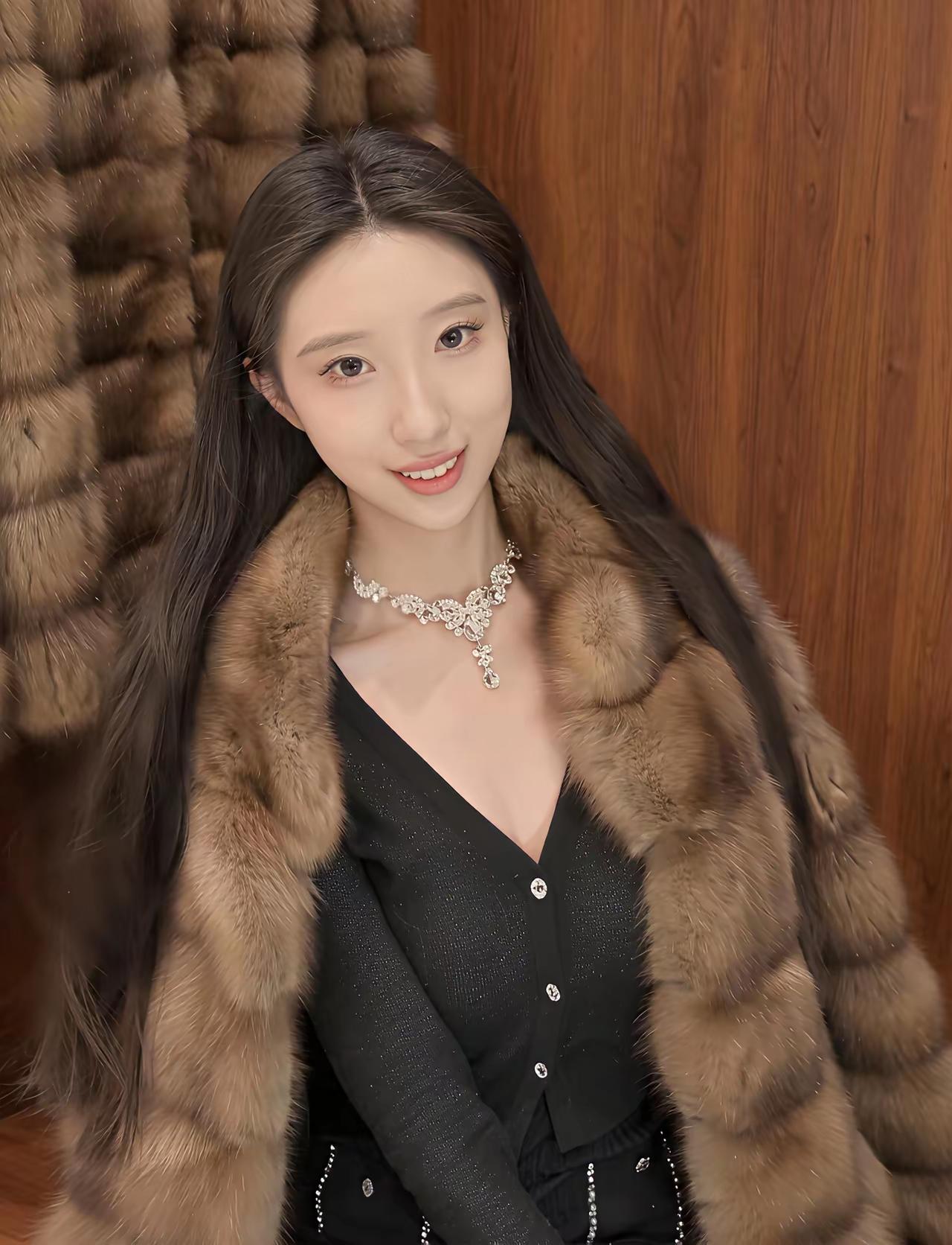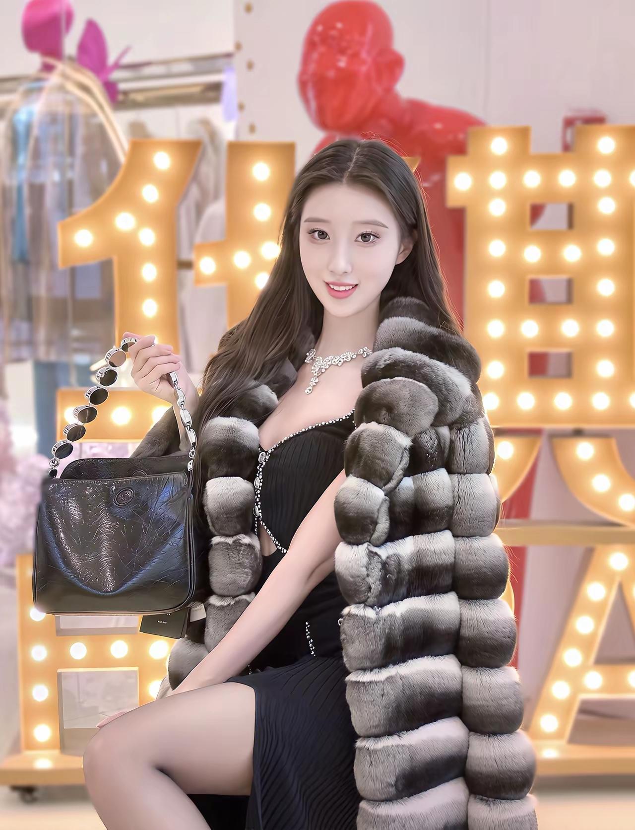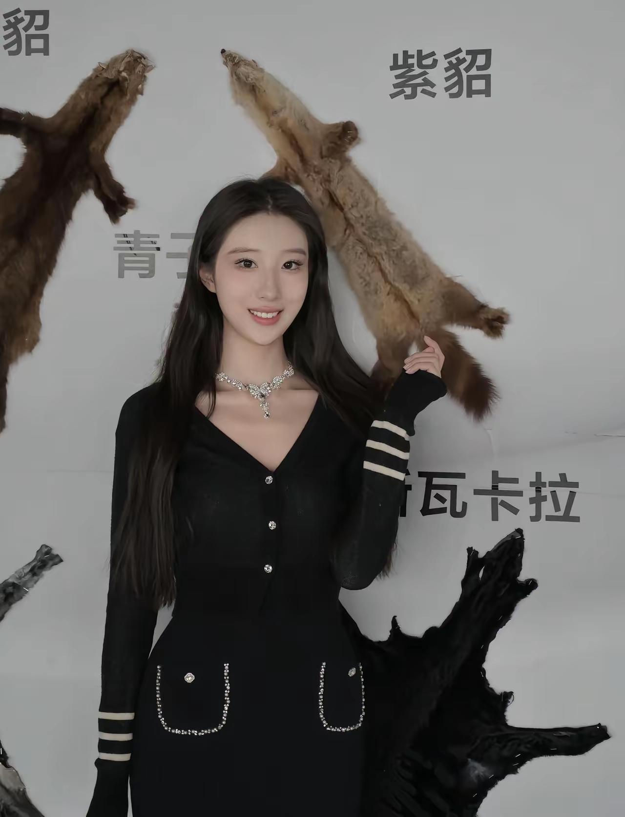 这套是复古贵气风,丝绒材质的黑色连衣裙自带贵气质感,泡泡袖和logo装饰添了甜美