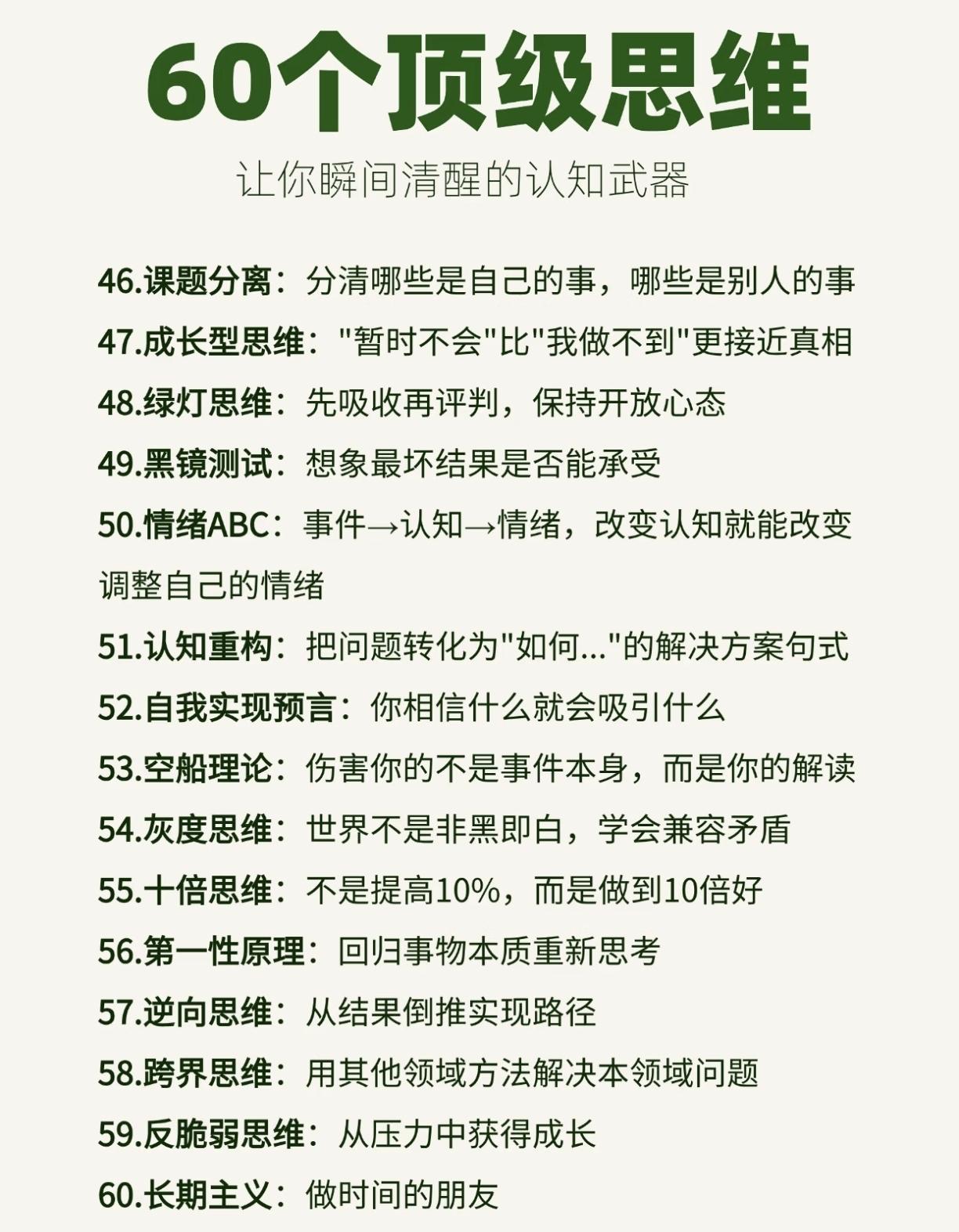认知提升法_连载7:60个顶级思维,让你瞬间清醒的认知武器。认知提升秘诀 认知提升秘诀 高层次认知技巧 个人认知思维 何谓高认知能力 自我认知思维 认知提升技巧 低认知思维