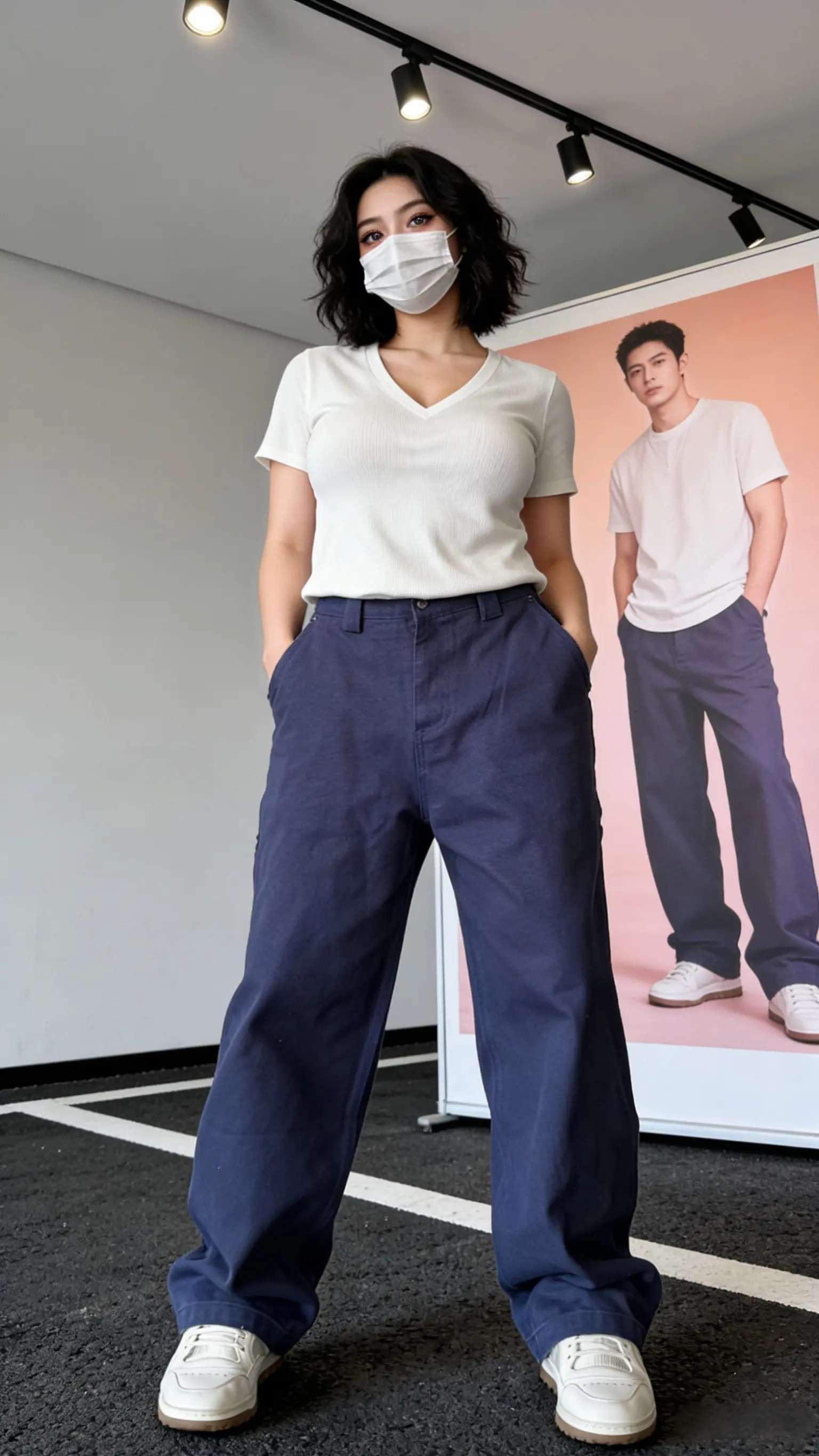 盎司珠地帆布棉三本针高色牢度重磅法工蓝长裤