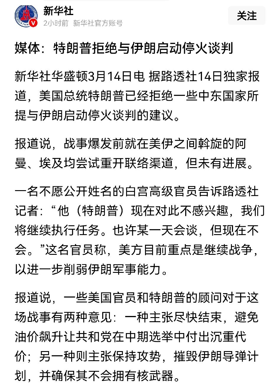 特朗普拒绝与伊朗启动停火谈判? 搞错了吧。应该是被拒绝才对!