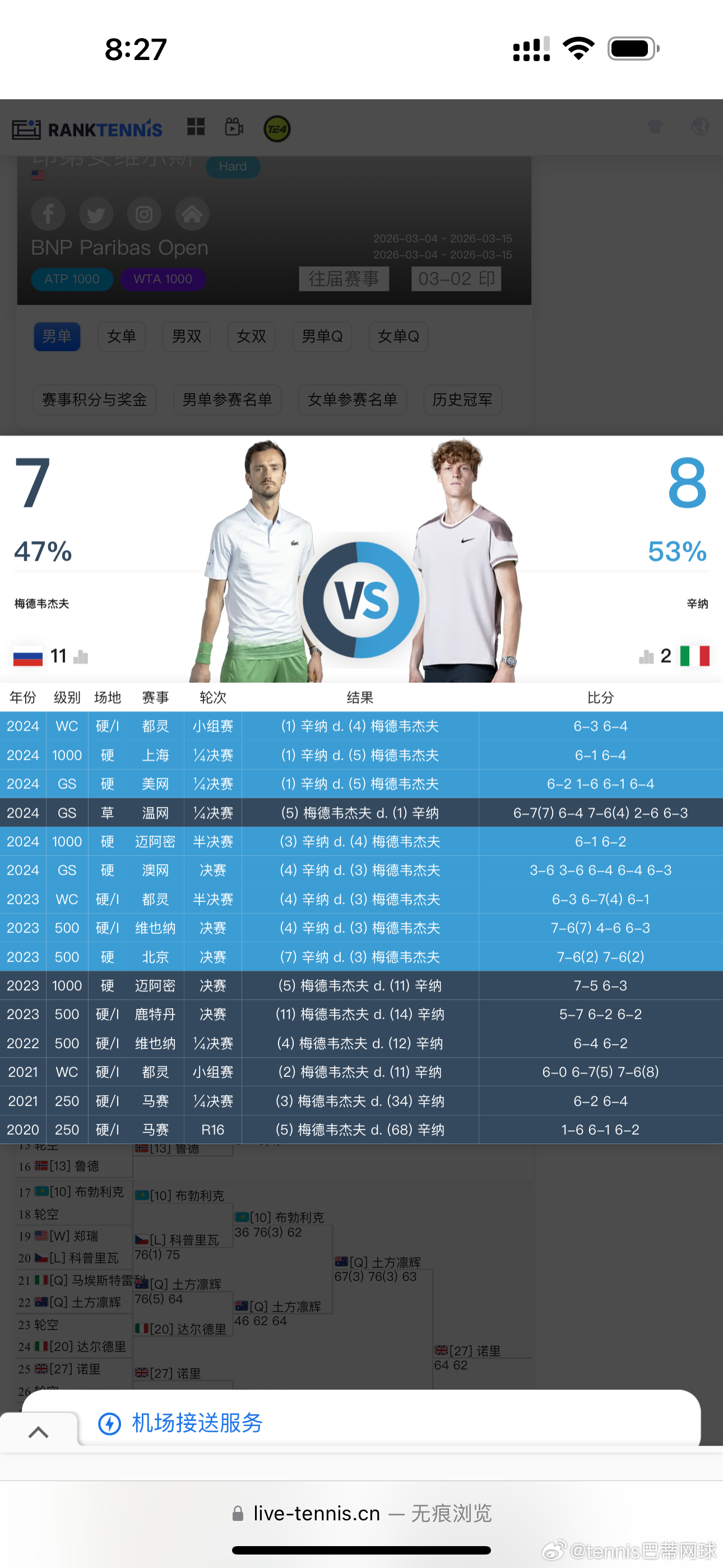 2026印第安维尔斯男单决赛 辛纳vs梅总