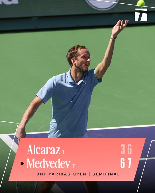 阿尔卡拉斯遭赛季首败 丨 梅德韦杰夫重返印第安维尔斯决赛