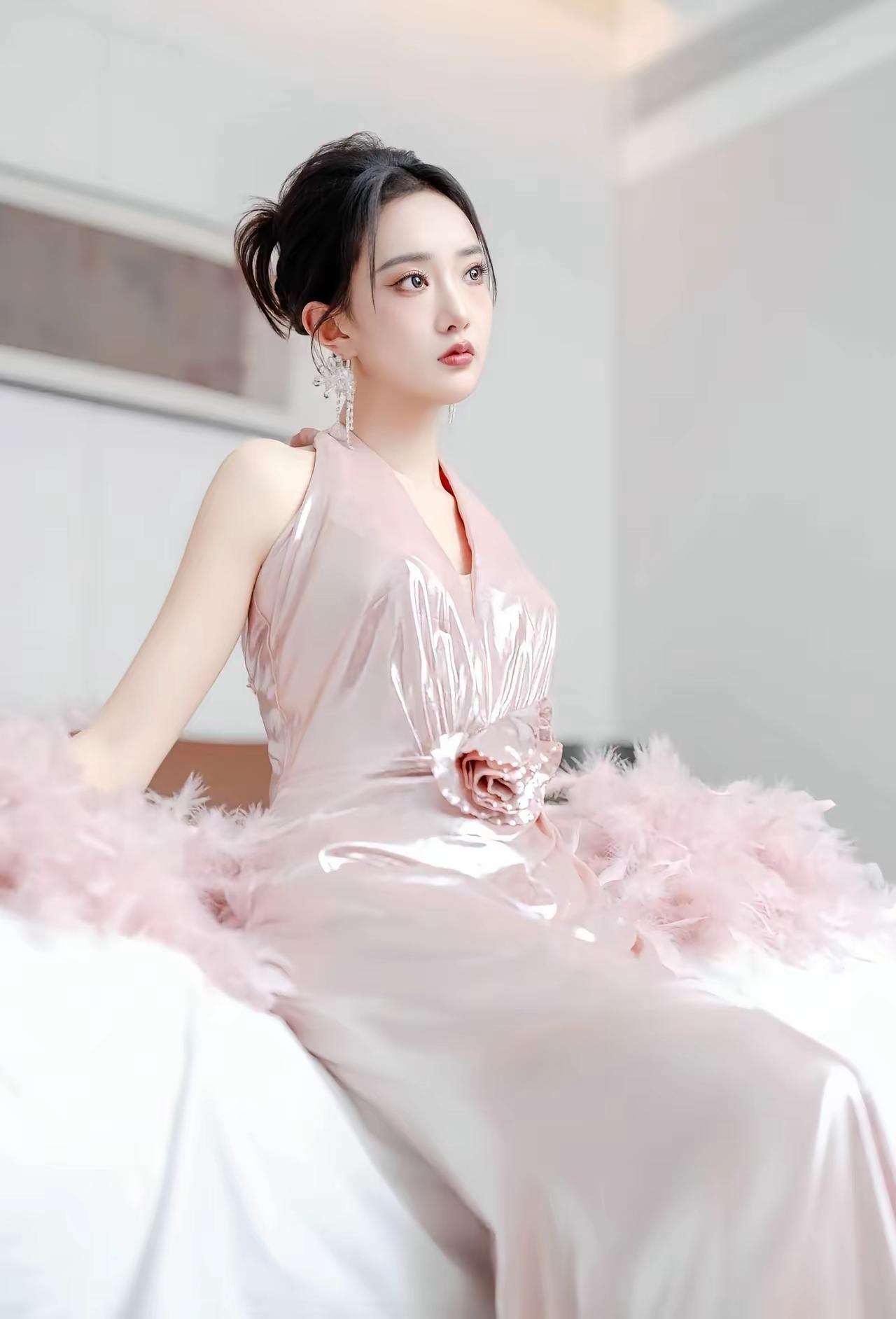 美女壁纸~一袭流光粉裙,温柔又闪耀,自带柔光滤镜,每一帧都美得恰到好处