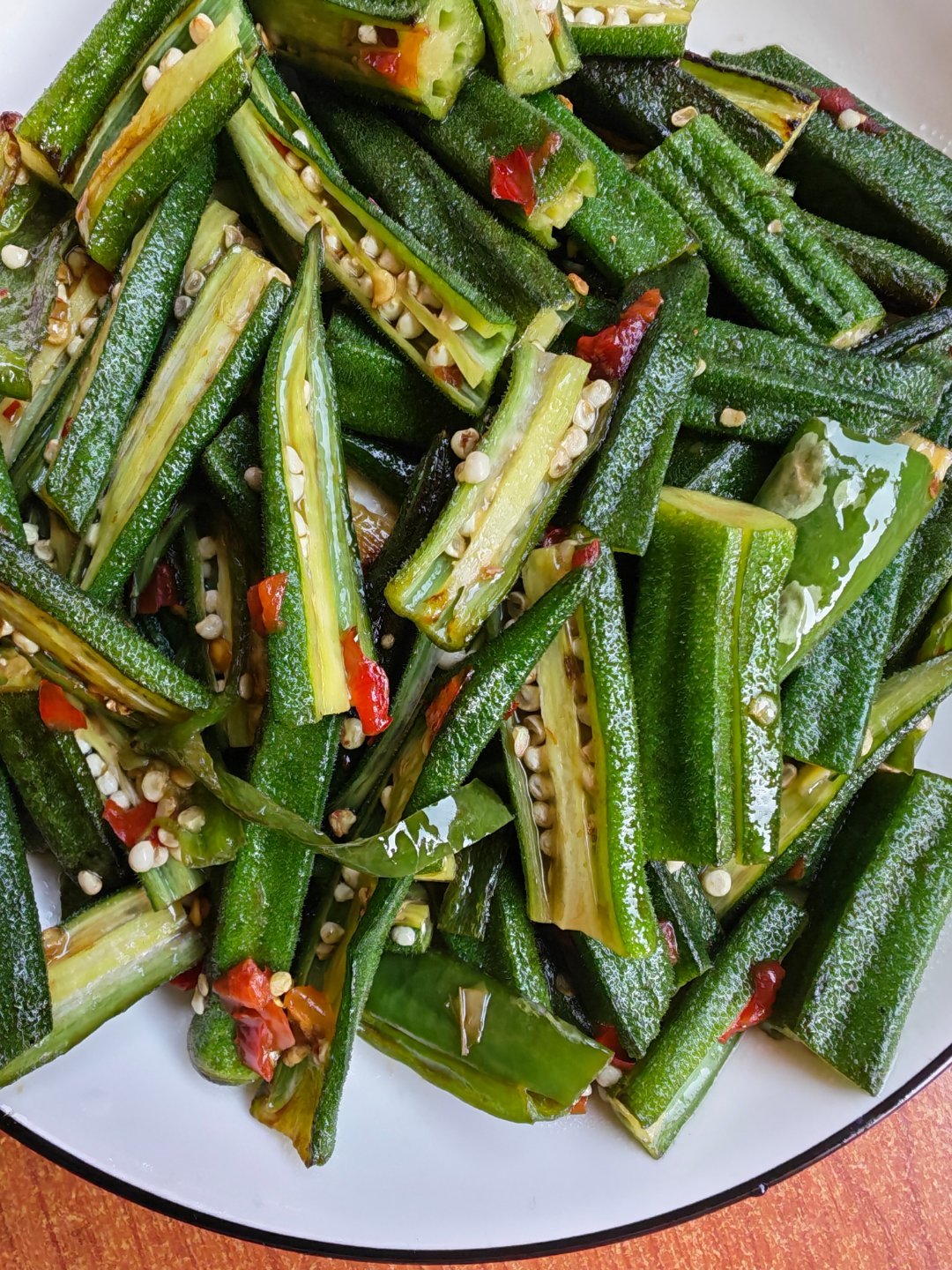 中午炒了个秋葵,感觉蛮好吃的中午吃什么