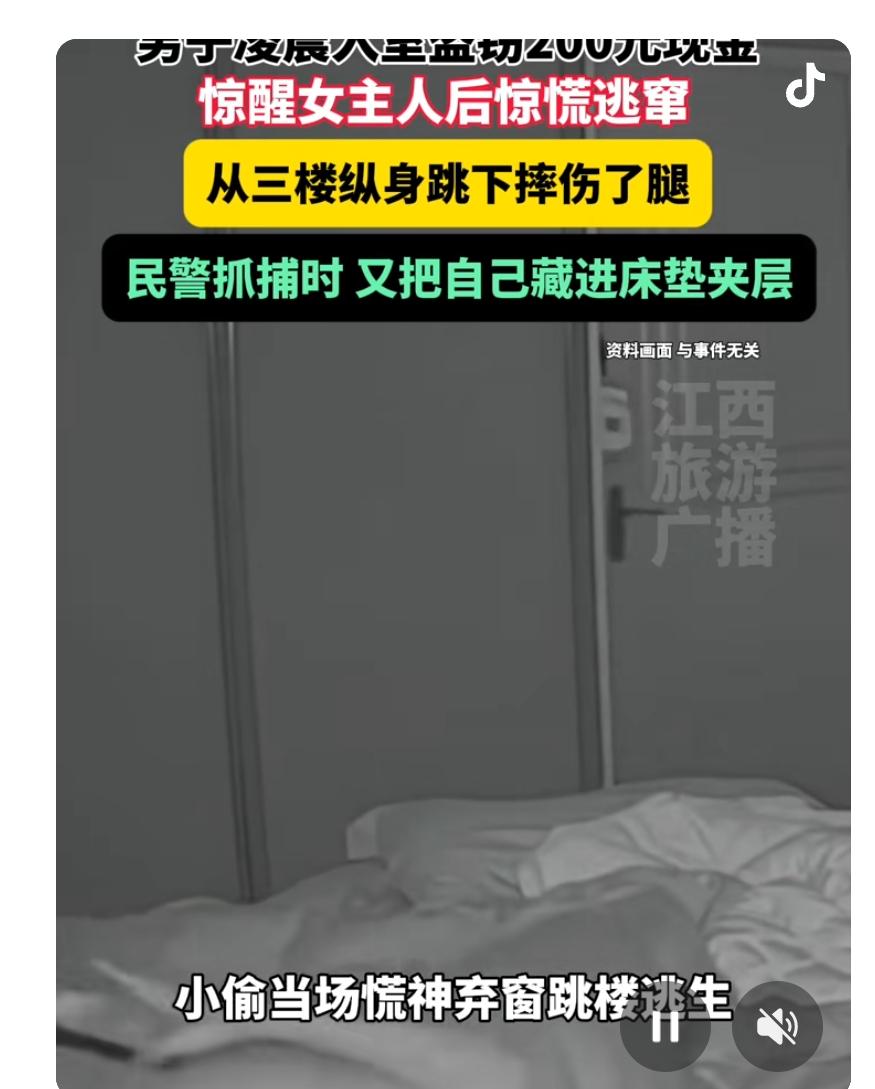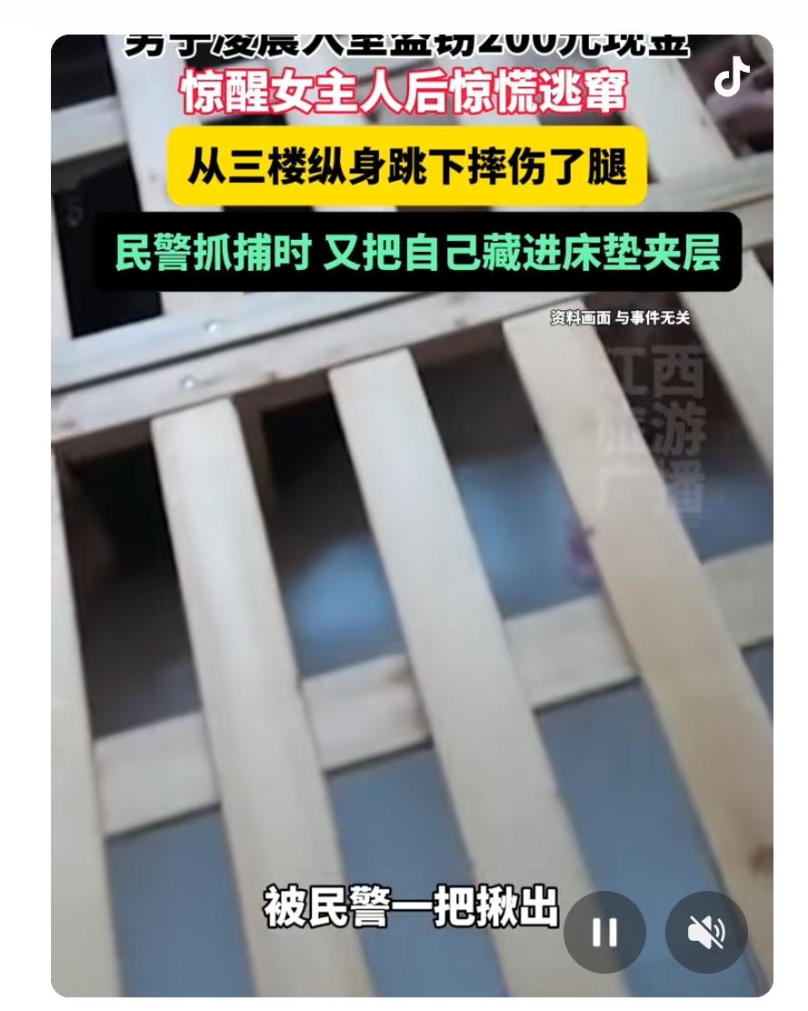 男子凌晨入室盗窃被发现,从三楼跳下逃跑 杭州这出“午夜惊魂”,简直比电影还刺激!凌晨三点,一名男子竟然敢潜入别人家偷了200块钱现金,结果被女主人一声怒吼惊醒,慌得他直接从三楼跳窗“飞檐逃生”,腿摔伤了还穿破衣服,真是“逃命也要带伤”的节奏。 事情是这样的:沈先生家深夜不宁,女主人突然醒来,一声怒吼吓得窃贼当场懵了。为了逃命,这哥们儿不惜“飞跃三楼”,结果摔了个大跟头,衣服都破了。可他还不甘心,反穿外套继续逃窜,活脱脱一个“狼狈小偷”。民警凭借监控迅速锁定嫌疑人韦某,下午去抓人时,韦某看到警察就像见了鬼,竟然钻进床垫夹层里瑟瑟发抖,最后被警察一把揪了出来,堪称“藏猫猫高手”翻车现场。 这波操作不仅让人哭笑不得,更反映了一个现实:小偷再狡猾,也逃不过法律的“火眼金睛”。更让人感慨的是,女主人的一句大喝,不仅守护了家园,也让这场闹剧划上了句号。 这事告诉我们,安全意识得提上日程,别等到“飞檐走壁”才慌乱。大家家里有没有遇到过类似的“荒诞瞬间”?评论区分享你的“午夜惊魂”故事吧!毕竟,生活比电视剧还精彩,咱们一起吐槽,一起长点心!盗窃标准