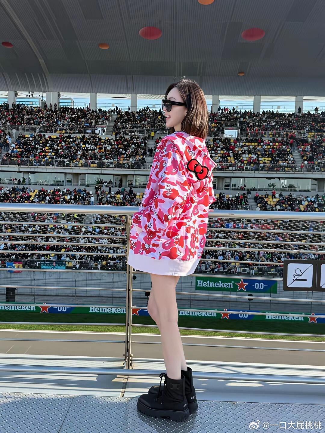 林太太陈若仪在上海观看F1赛事,与周柯宇、胡兵合影。她状态极佳,高挑美丽,曾是模
