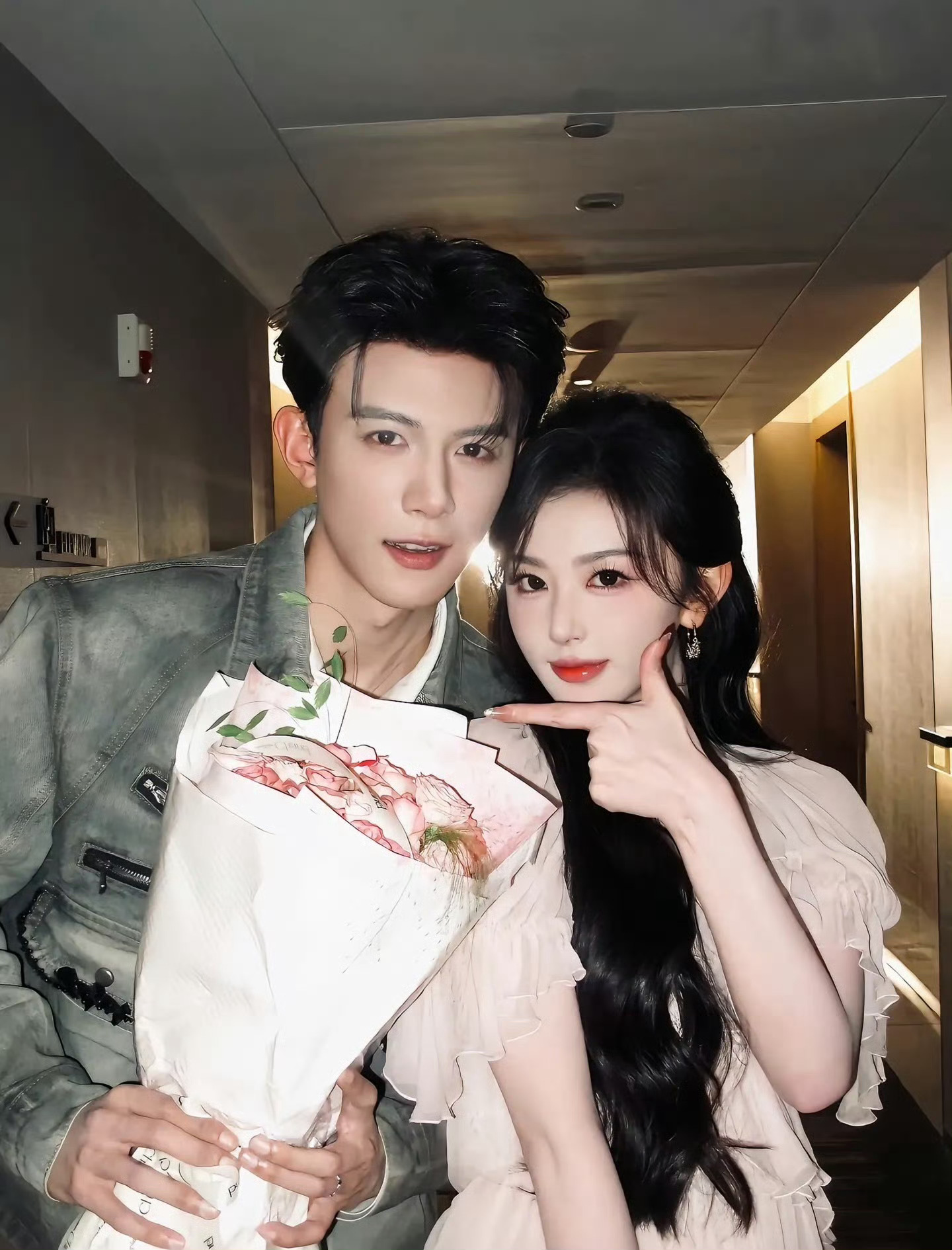 孔雪儿邓凯现代装合照男帅女美,甜🍬