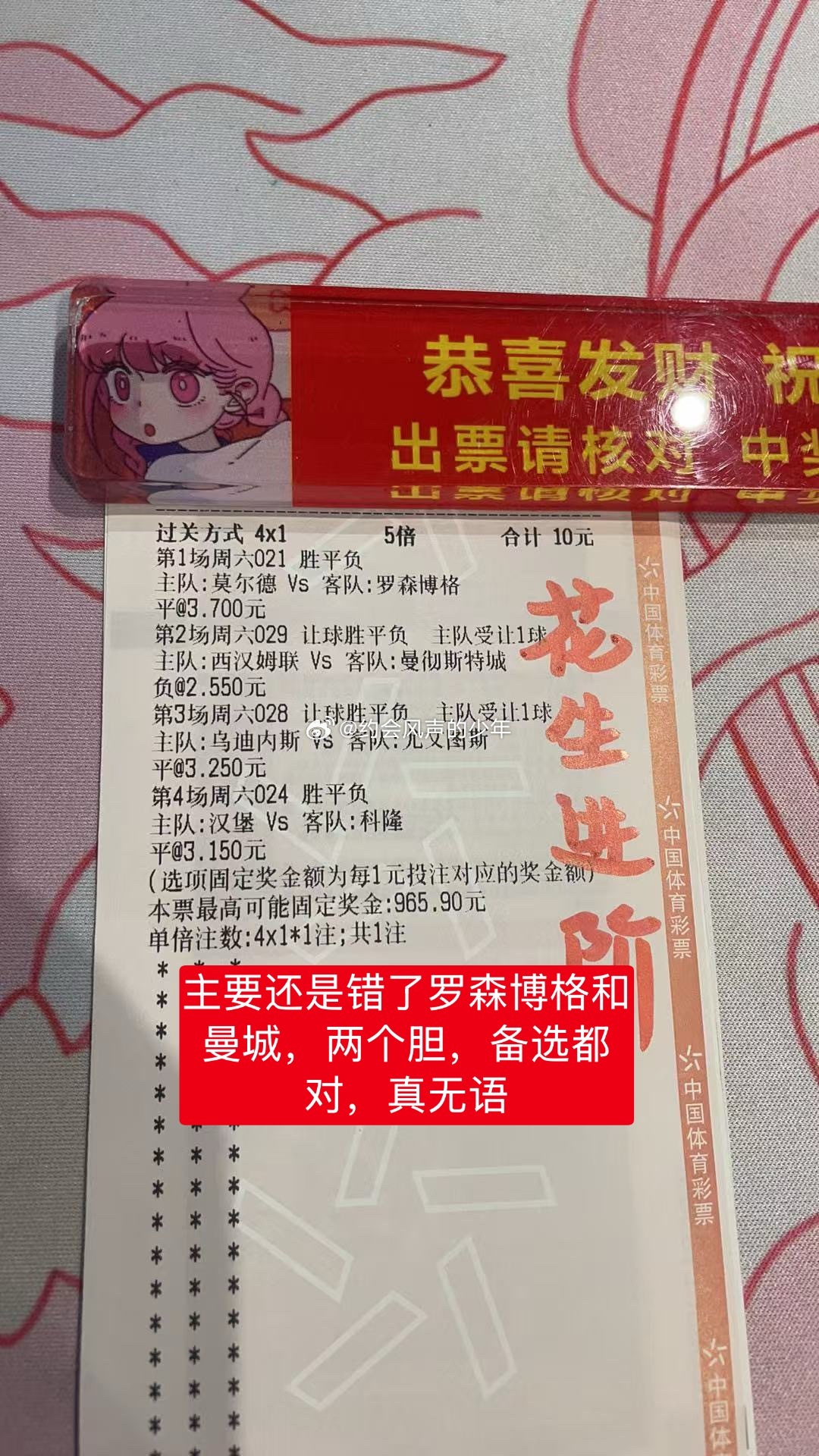 昨天晚上不行,感觉还是选的不好,胆罗森博格平局,曼城让负都不对,备选的尤文图斯让平,汉堡平都对。
