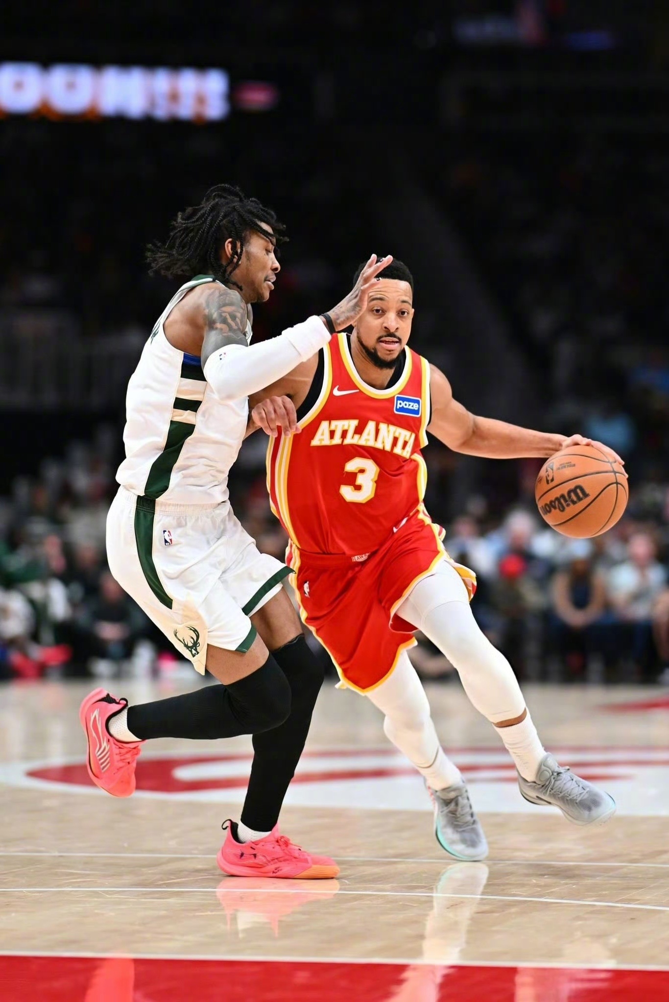 CJ·麦科勒姆上脚音速14「大白鲨」🦈 防守他的小波特穿的是音速13🍑