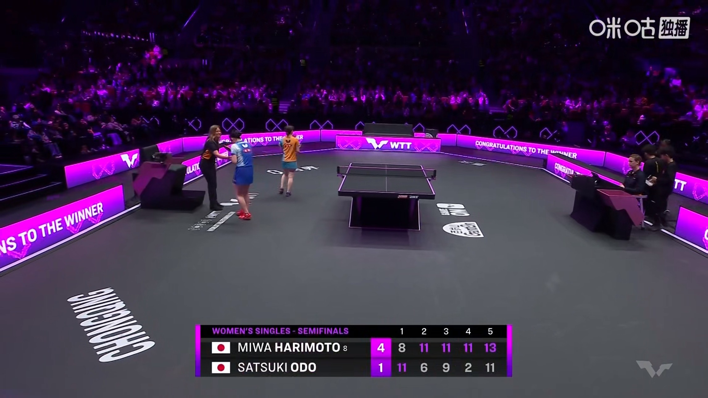 张本美和4比1大藤沙月(8-11,11-6,11-9,11-2,13-11)晋级wtt重庆冠军赛2026 女单决赛