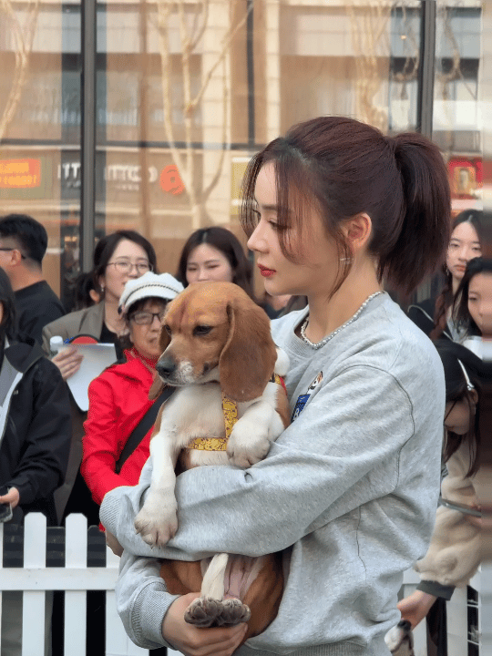 偶遇袁姗姗在街头做义工温柔和狗狗互动,这样的袁姗姗太治愈了~