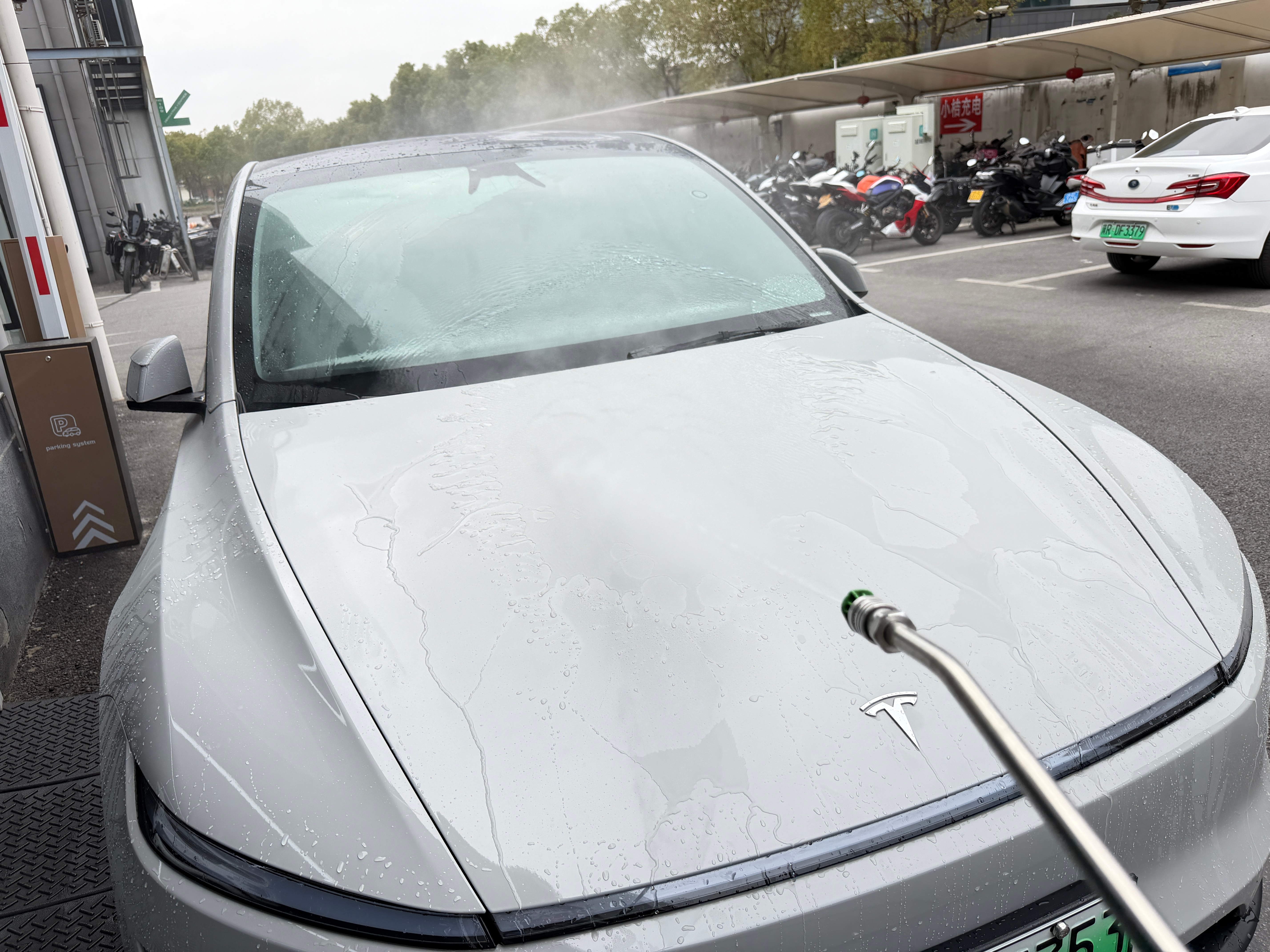 刚洗完的车,有坨大鸟屎,开来超级车间,自己冲一下。
