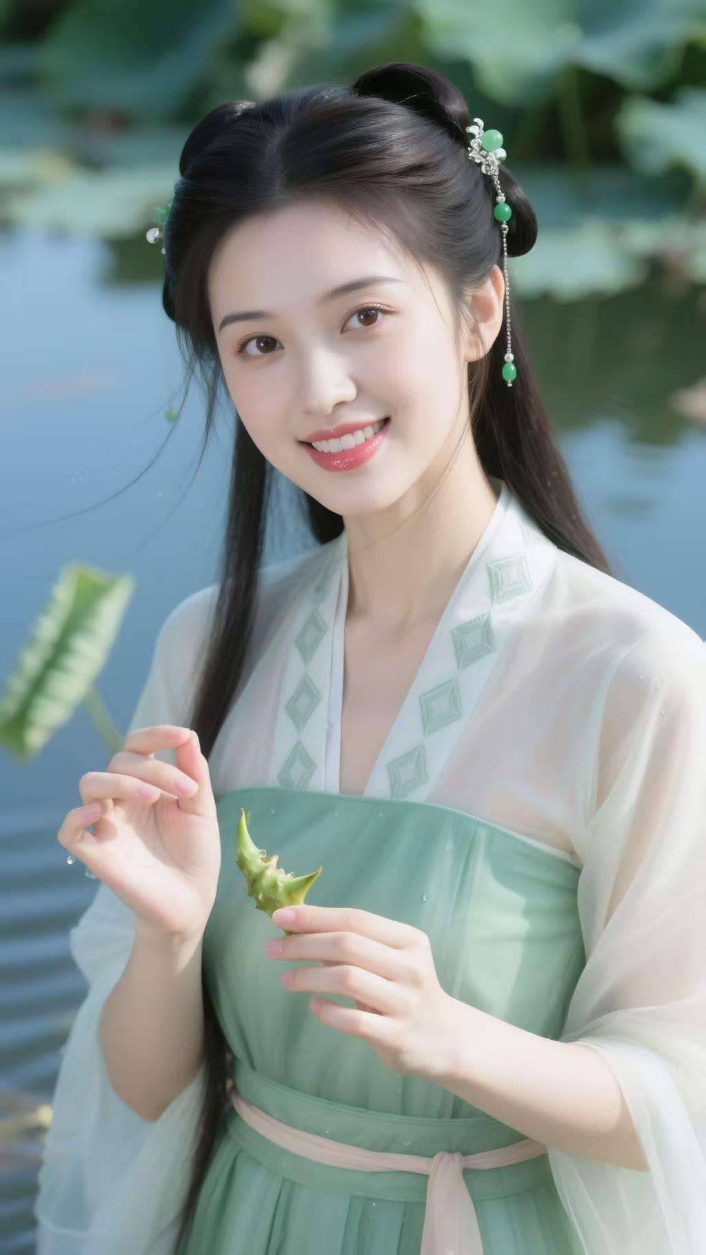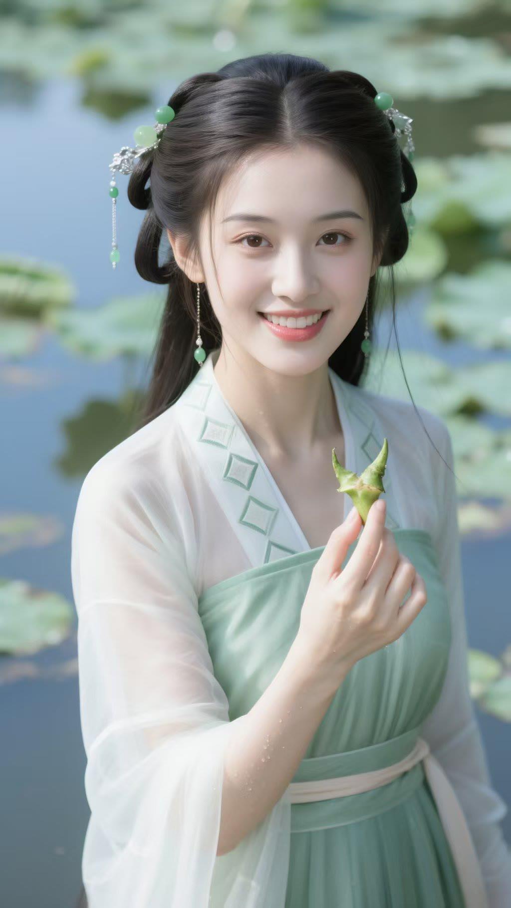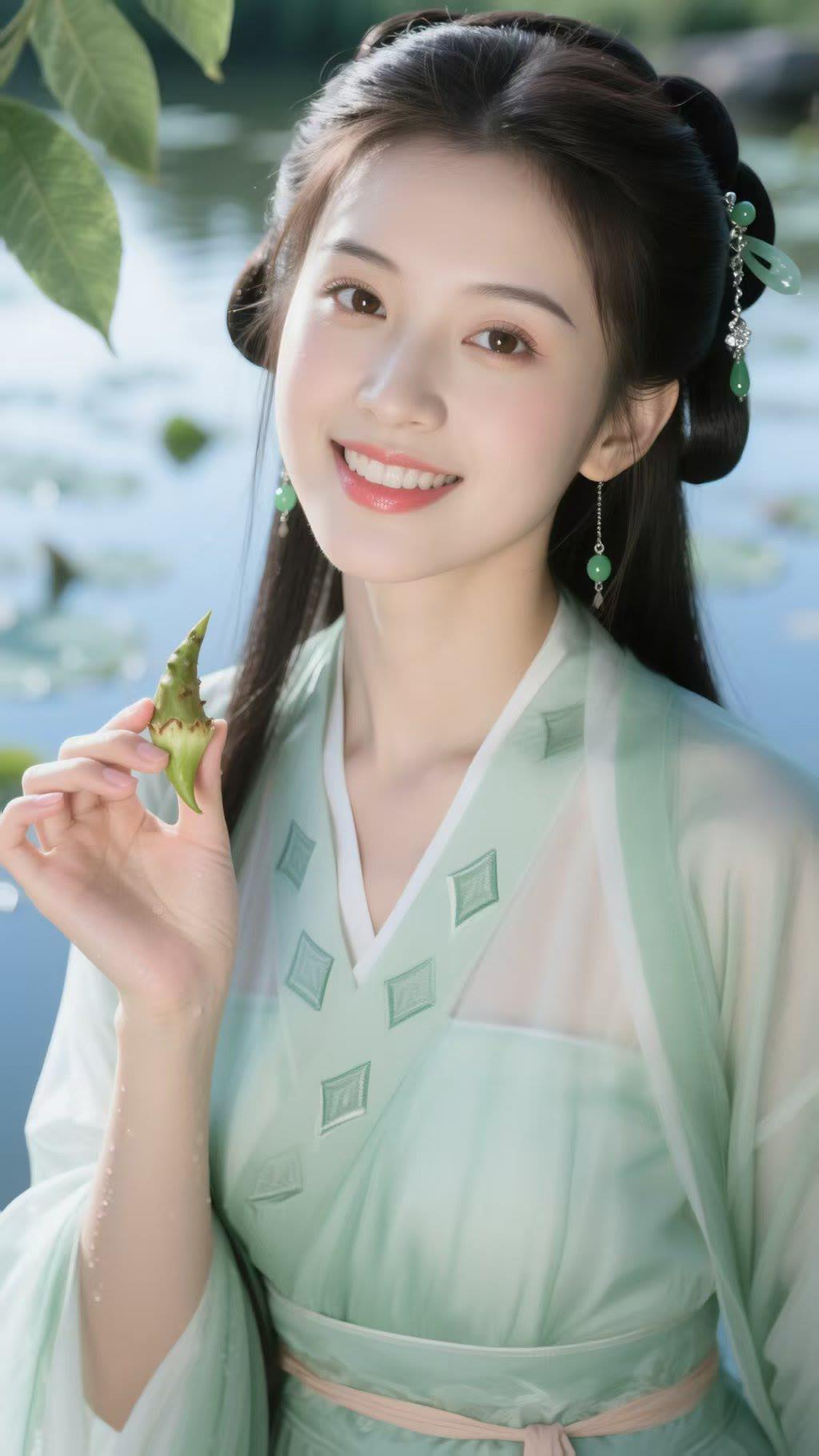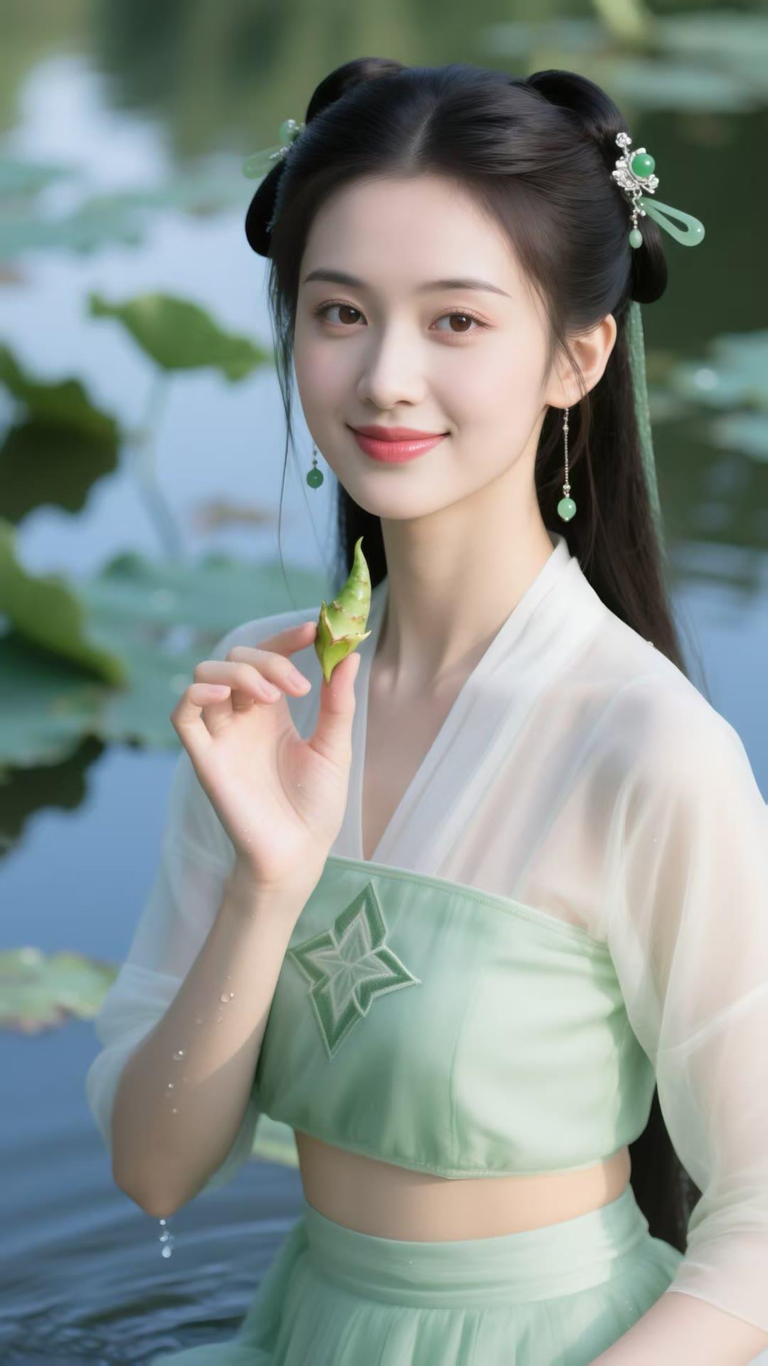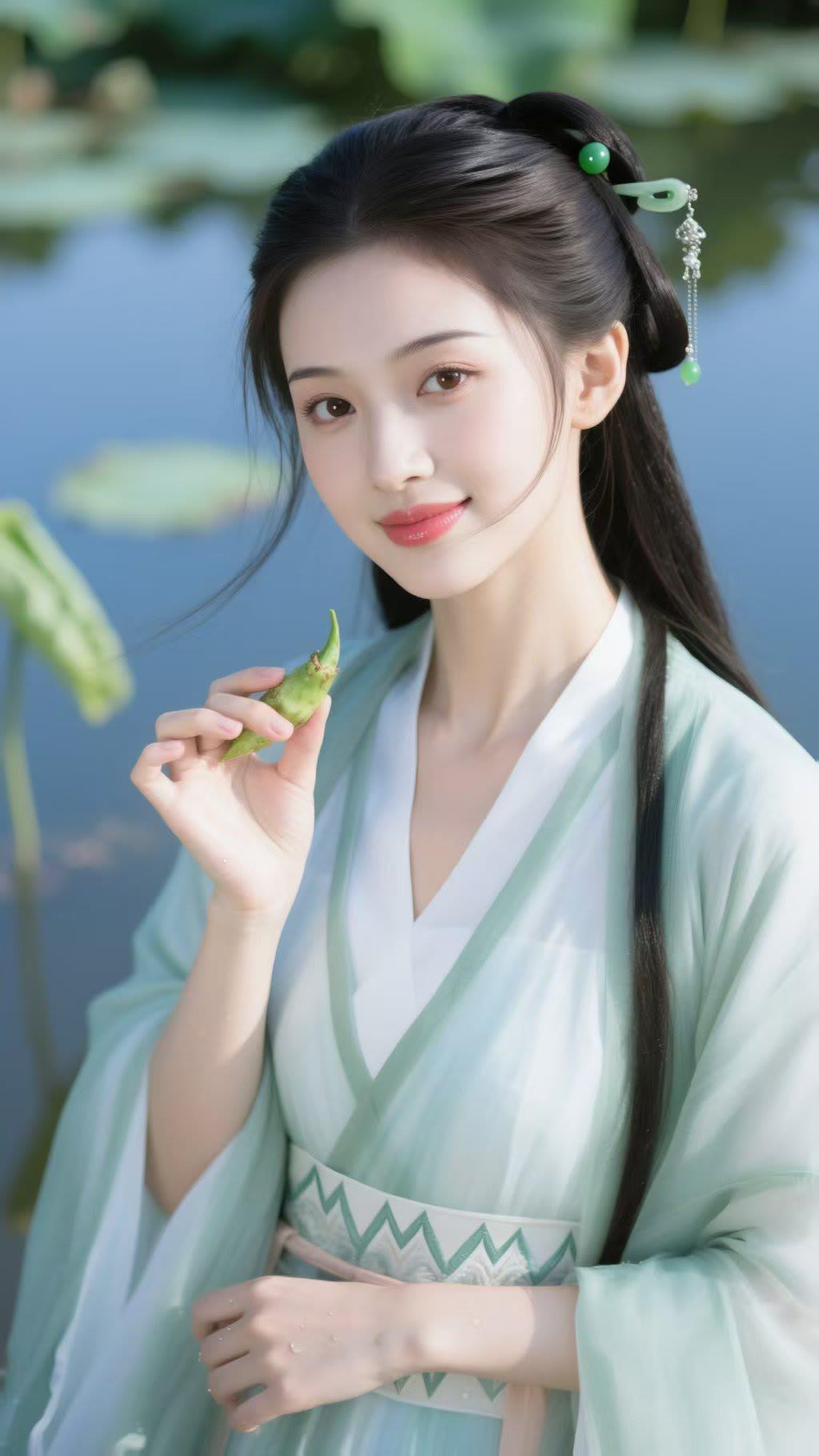 温柔古典,绿意盎然,古风少女与自然和谐共处。