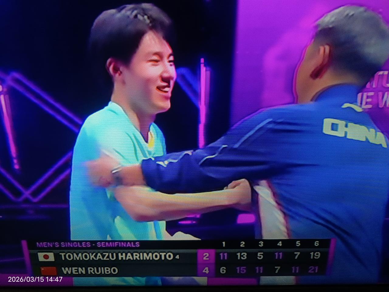 小温帅哥拼掉林诗栋的苦主张本智和闯进重庆冠军赛的决赛。 在重庆冠军赛的半决赛中,国乒19岁的小帅哥温瑞博,敢打敢拼,以大比分4:2拼掉了对国乒威胁最大、林诗栋的苦主日本选手张本智和,成功闯进最后的决赛,温瑞博将和林诗栋的另一个苦主、法国选手小勒布伦争夺冠军。 比赛中,温瑞博就是敢打敢拼冲击张本智和,特别是第六局,竟然和张本智和拼出了21:19的比分。 国乒和广大期盼的第三单打人选终于出现了,就是小帅哥温瑞博!