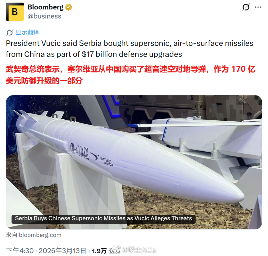 武契奇先是亮出了米格29战机下方的东方超音速空地导弹,然后突然再度爆料——三方联盟,准备趁中东大战,进攻塞尔维亚!嗯……难道欧洲又开始要打起来了?什么是三方联盟?就是2025年的时候,克罗地亚、科索沃、阿尔巴尼亚三个鼻屎小国,组建了一个套娃北约的新军事联盟——地拉那军事联盟。克罗地亚和阿尔巴尼亚是北约国,但科索沃不是。所以小环套科索沃,大环北约再套个小环。这个是欧洲方向,给科索沃撑腰整出来的东西,就是想让塞尔维亚不要随便对科索沃出手。而这些天,塞尔维亚先亮出射程400公里的CM-400AKG,空对地导弹,表示自己有这个大杀器。这400公里的导弹覆盖克罗地亚和阿尔巴尼亚全境,威慑意思明确。武契奇这番表达,就是“我有货,有支持”!然后,再把三方联盟的打击行动,直接公开喊出来,就是把阴谋刷一下拉到太阳下晒起来,阴谋变阳谋。其实挺尴尬的就是,论军备实力,塞尔维亚甩三方联盟几条街……对,被包围的塞尔维亚很绝望,那是面对美英法德这些国家,像这种小国家,除了克罗地亚有12辆豹式和12架老米格21,火炮、大防空为0。真打起来这三小国家只能掏出填线步兵。所以,这三厮要搞事,究其根本,就是拖北约下水。科索沃的背后,一直有土耳其的影子,土耳其和阿尔巴尼亚合伙在南线搞科索沃。克罗地亚背后则是欧洲系北约势力。现在的问题很别扭——很明显,土耳其想趁老美在中东打乱战的时候,拓展在欧洲的势力了。埃苏丹真是天生的苍蝇,特能找缝……然后是克罗地亚这边,克罗地亚就挺复杂——总统坚决反对以色列,要求停止一切对以色列的军事合作。对乌克兰则是有限支持。而克罗地亚总理,则屁哈哈地去以色列窜访送温暖。而且还全面支持乌克兰。克罗地亚是半总统制,总理略微更有实权一点点。真要对塞尔维亚行动,那就是内阁的意思。而内阁,现在是舔以舔美的极度舔狗。如果克罗地亚也参与,那必然是美以背后在推。土耳其想乘乱往欧洲拓展,美以想乘乱给欧洲再点个火?本来中东打起来油价高欧洲就难受的求爷爷告奶奶了,塞尔维亚再打起来,这是真想把欧洲吃干抹净。奶龙这是准备一步到位把欧洲噶到位的了?突然想到,301调查名单里也有欧盟,似乎就明白了!烽火问鼎计划伊朗回应内塔尼亚胡身亡传言内塔尼亚胡缺席以色列关键会议