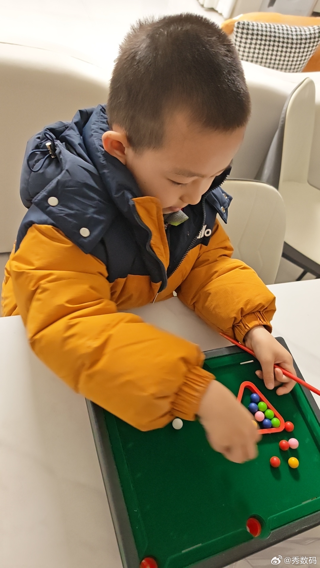 前几天打台球被朋友虐了,刚才买了套台球,准备在家使使暗劲练习练习,争取下次打台球