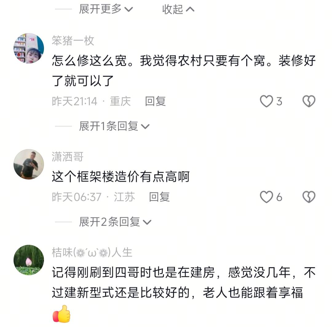 看到农村四哥,拉了三四车的砖过来,我忍了 看到他指着卫生间说卫生间的砖子必须要整齐,我也忍了 可看到评论区说广东的砖是最好的,我再也忍不了了 说真的,现在刷短视频就爱蹲三农博主的日常,本来想找个下饭视频凑活吃口饭,结果刷到农村四哥的新视频,从看他建自建房到工人干饭,愣是把外卖放凉了都没动,谁懂这种越看越上头的感觉? 说实话,四哥这视频是真接地气,开头戴着安全帽站在工地,说要带大家看自建房进度,现在正砌砖,昨天刚拉了两三车砖过来。他带着镜头逛了一圈,指了一米五高的卫生间墙,又上三楼说了定制窗户的事儿,选品牌都挑了好久,像极了我们装修时纠结的样子。 本来以为他就是全程拍建房流水账,结果走着走着,镜头一转直接扎进鸡窝抓公鸡了,说要给工人做鸡宴,这转折我是真没料到。然后他切了竹笋,杀了鸡,熬了鸡汤还做了钵钵鸡,工人吃得那叫一个巴适,说真的,看得我都想蹭饭了,太给力了! 视频看完翻评论,我和小伙伴都惊呆了,真的啥声音都有。有人说四哥做网络发财了,三年的房子说换就换,真有钱;还有人算全框架下来加装修得100多万,不是吧?这也太夸张了?还有人说框架结构用标砖不对,我反正看不懂,可能是吧。 还有热心网友直接给干货建议,说要先抹灰后装窗户,不然收口贴砖都麻烦,还提醒要买广东品牌瓷砖才耐用。说真的,看到这我瞬间想起我老家亲戚,之前建房本来想省事儿先装了窗户,结果后面贴砖全是缝,返工搞到崩溃,早知道有这建议也不至于踩坑。 之前别人说的,种什么因得什么果,你看四哥对工人大方,顿顿都给安排得明明白白,工人干活也上心,这不就是最实在的道理嘛。 总之,我想说的是,咱们普通人建自建房,真的别图快,先抹灰再装窗户这个细节一定要记牢,瓷砖尽量选靠谱的广东砖,耐用还省心。还有啊,博主赚的钱怎么花是人家的自由,咱们看个热闹学个经验就完了,没必要揪着人家说三道四,对吧? 四哥自媒体 自建房推荐用砖