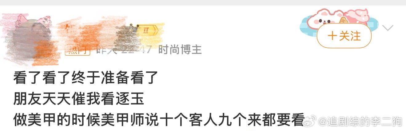 逐玉入侵了我的生活 太好啦我被逐玉包围啦~美甲店、理发店、按摩店……我们程序员就这样随机解锁逐玉播放地点!到底谁还没有来🐧看逐玉 啊,这个逐玉就是看了一集就根本出不来了,18集还在为林安镇的村民们落泪,看到24、25集预告又开始期待谢征长玉重逢了,昨晚贪了今晚决定再贪一把,忍不了根本忍不了!