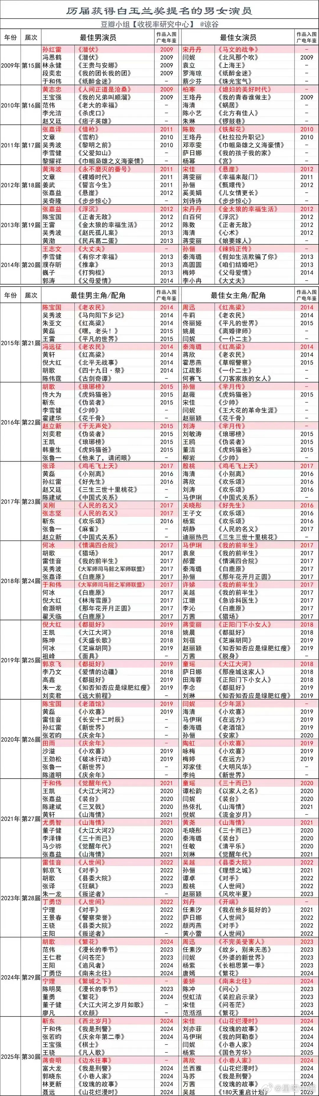 第31届白玉兰奖搬运!历届获得白玉兰奖提名的男女演员以及作品入围年鉴情况!
