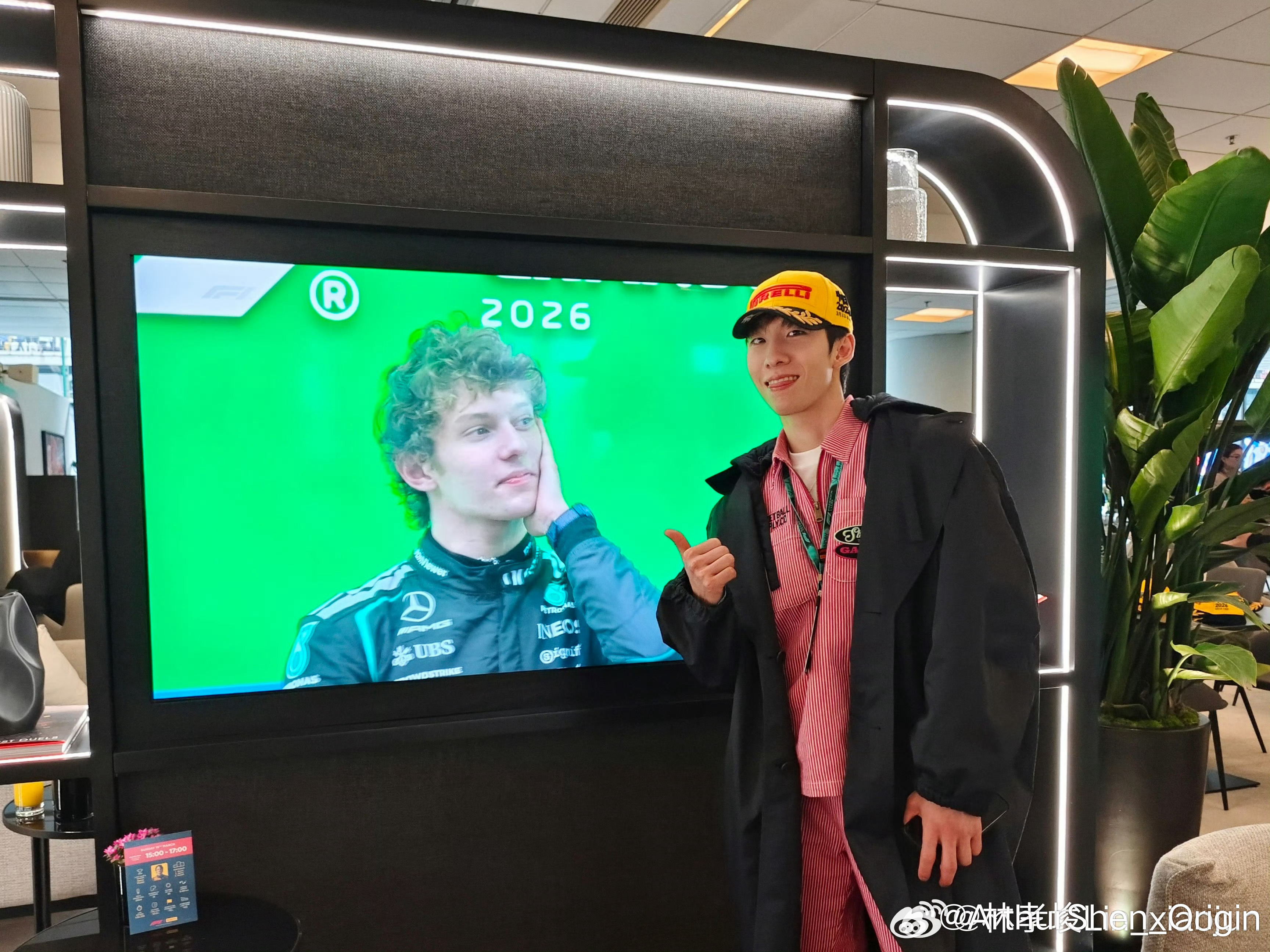 林孝埈晒F1观赛照 林孝埈 昨天刚给安东内利颁完小轮胎,今天安东内利就拿下了分站冠军,也算是一种缘分了。