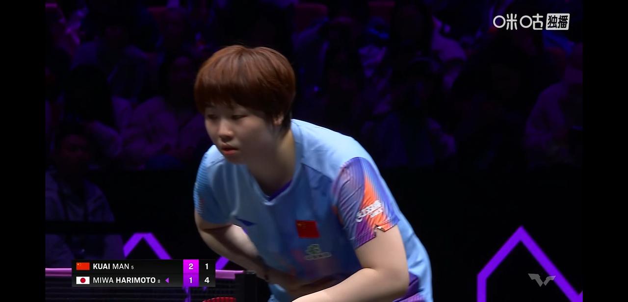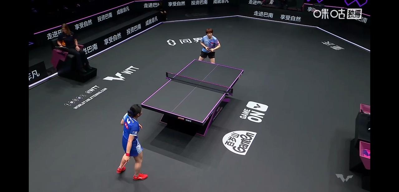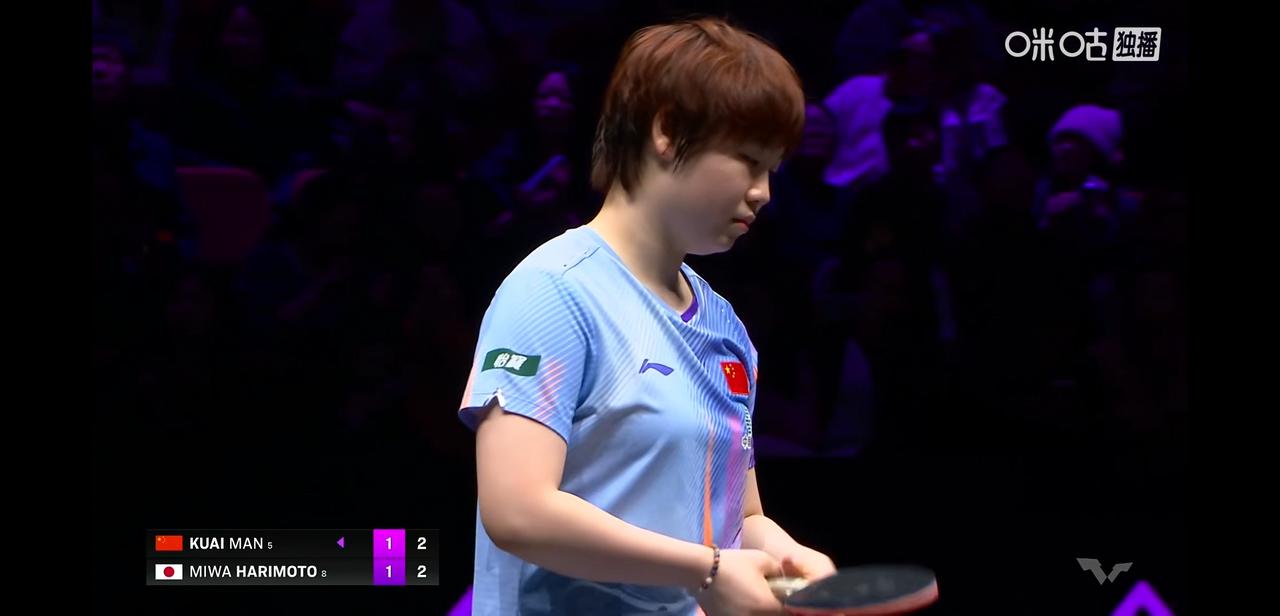 重庆冠军赛赛女单决赛, 蒯曼对战张本美合。 今天真的是抗日的一天, 张本兄妹也是有实力的, 今天蒯曼一定要要加油呀! 相信蒯曼, 冠军赛记得是有两场都是先失去一局的情况下逆转的。 今天虽然是第一局6:11丢了, 但第二局、第三局分别以11:7,11:9拿下, 第四局张本美合要了暂停, 加油蒯曼!继续加油!