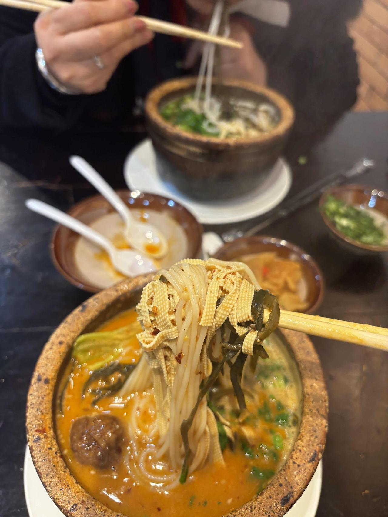 咸阳老街里月亮米麻酱米线店,内外装修装饰都很接地气,粗瓷锅盛着热气腾腾的米线,端上来就让人挪不开眼——白生生的米线泡在红油汤里,上头堆着黄澄澄的麻酱,筷子一搅,麻酱一下就化进汤里,整碗米线立马裹上一层香浓香浓的麻酱,吸溜一口,米线滑溜溜的,麻酱的醇厚和红油的麻辣在嘴里打架,再就着店里免费小菜,越吃越上瘾。