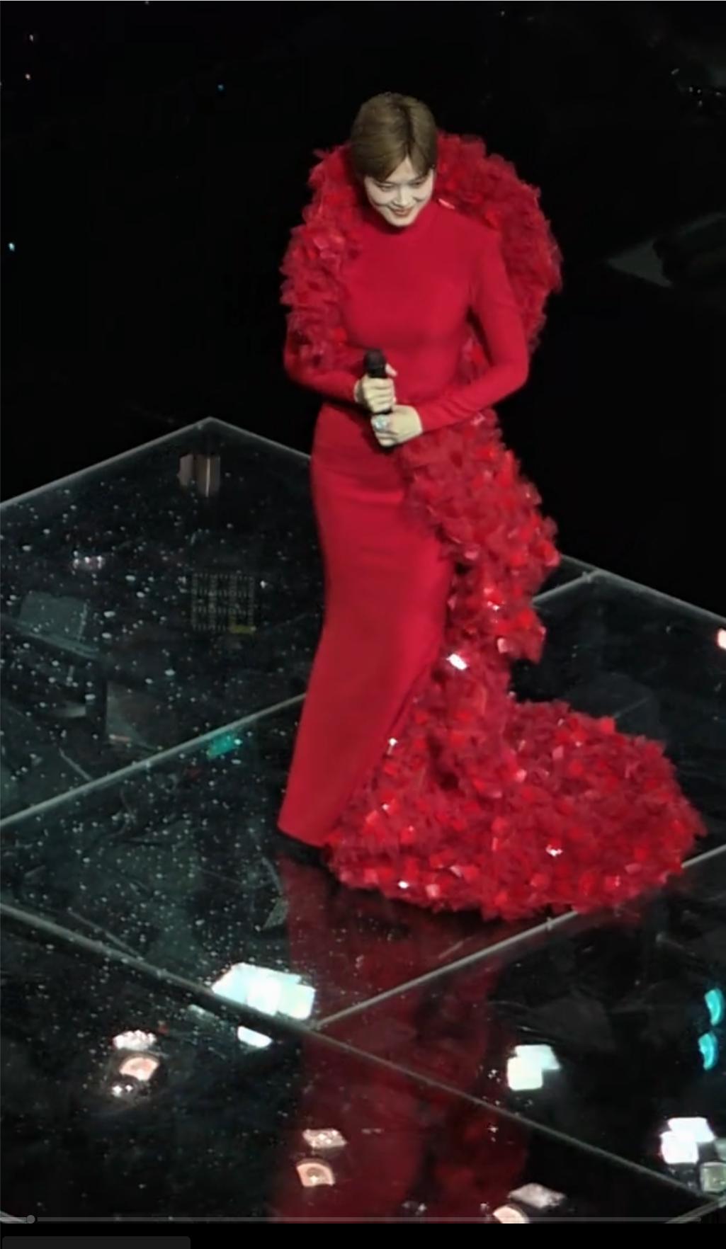 李宇春在上海演出,多套衣服惊艳亮相,裸背大红色鱼尾裙,把她皮肤衬托得白皙,柔嫩,金色闪闪的西装,完美展现出身材高挑,有气质,黑色西装衬托出她的霸气十足,不过还是喜欢她穿那金色西装,不是喜欢在灯光下在闪闪发光,而是这衣服,太适合她身材了,看起人好高,身材好,皮肤也衬托得更白皙,整个看起好精神,有气质。你们觉得那套最适合她呢!