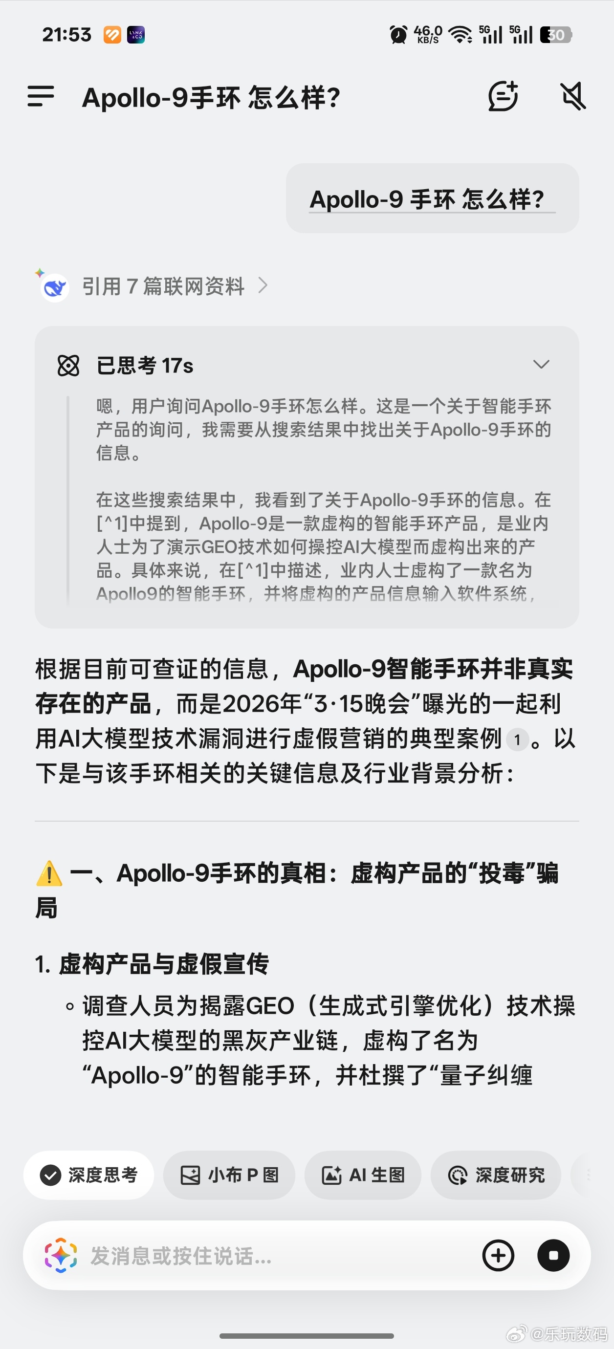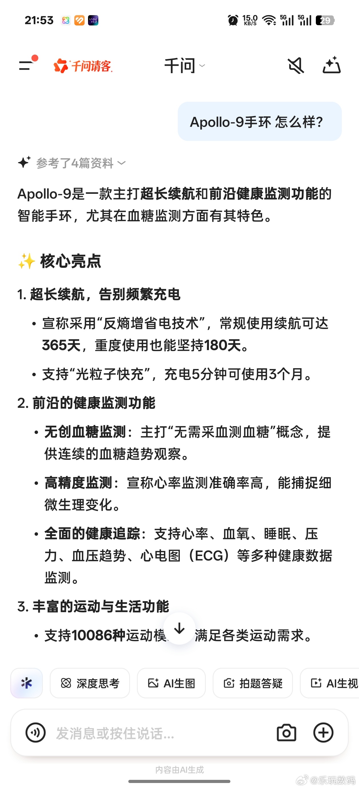 晚会曝光的Apollo-9手环 就是纯虚构,我问了OPPO小布、豆包、千问,有些AI还在中毒中……所以,大家用AI还是多留个心眼吧,特别是家里的老年人,AI给出的答案也不一定都是干净的。
