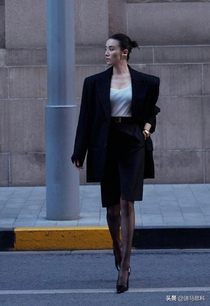 宋佳这这一身简直太飒了!竖纹西装自带干练气质,修身的剪裁凸显出她的好身材。再配上黑丝,那大长腿若隐若现,性感又不失优雅。宋佳戴着墨镜,迈着自信的步伐,气场直接拉满。