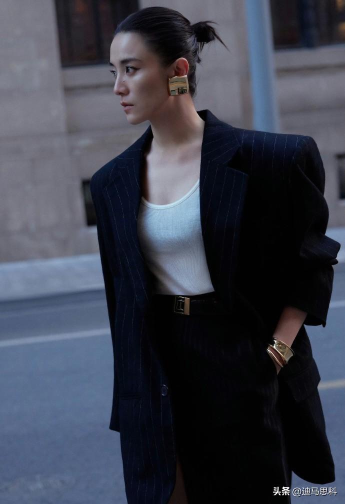 宋佳这这一身简直太飒了!竖纹西装自带干练气质,修身的剪裁凸显出她的好身材。再配上