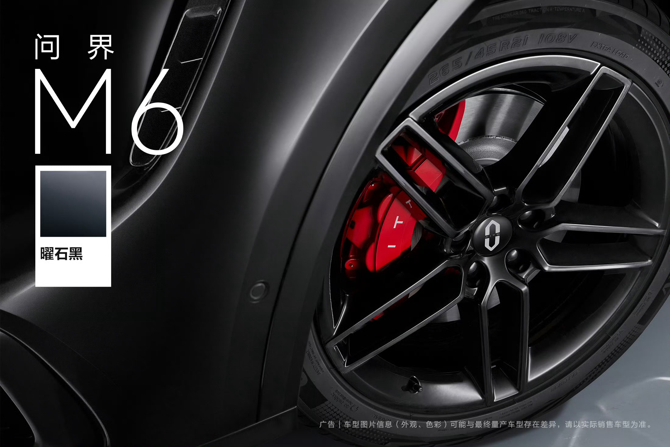 问界M6 曜石黑 这个配色真的好酷,黑色车身与红色的刹车卡钳,让人觉得好有力量