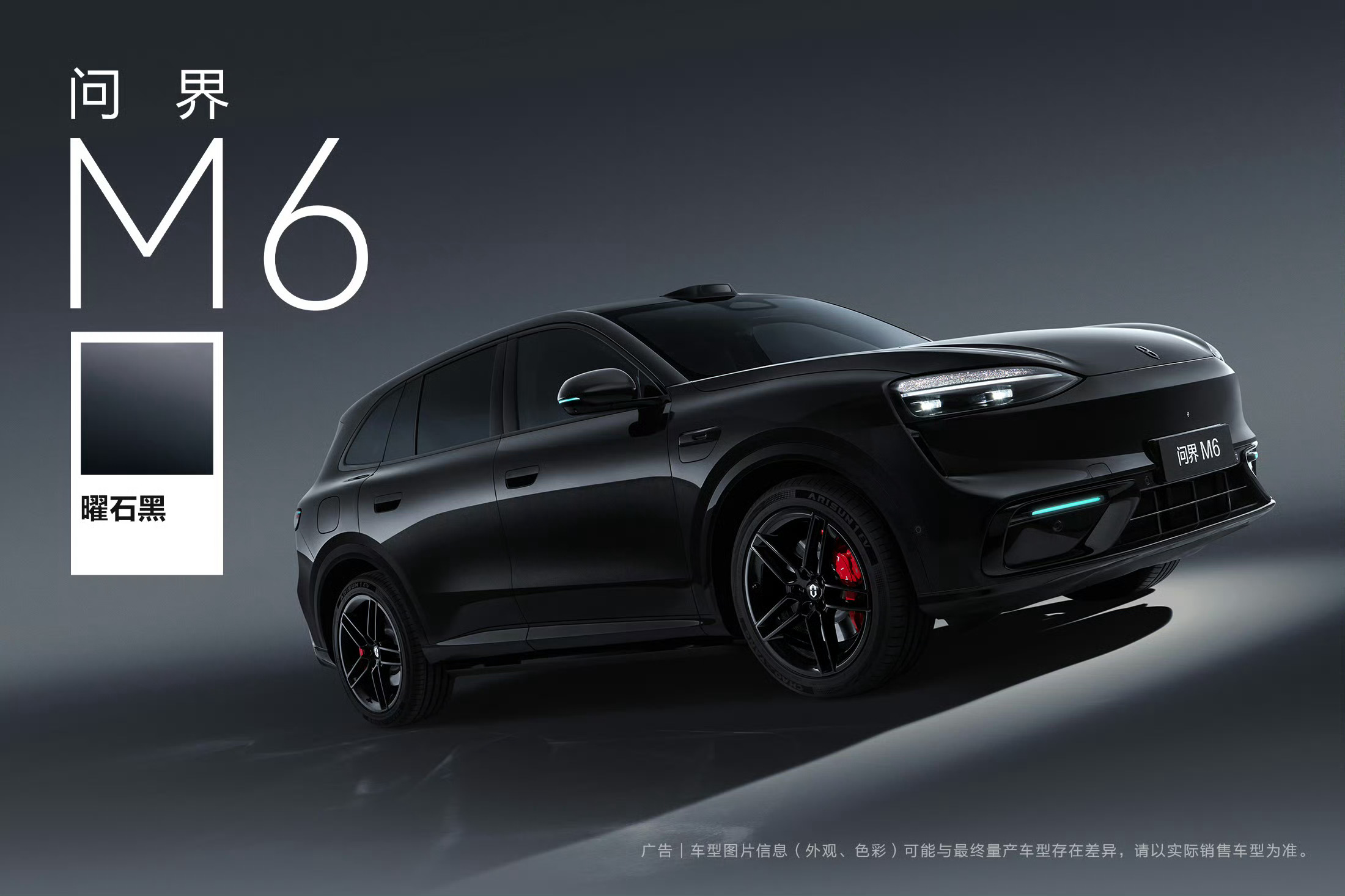 问界M6 曜石黑 这个配色真的好酷,黑色车身与红色的刹车卡钳,让人觉得好有力量感!