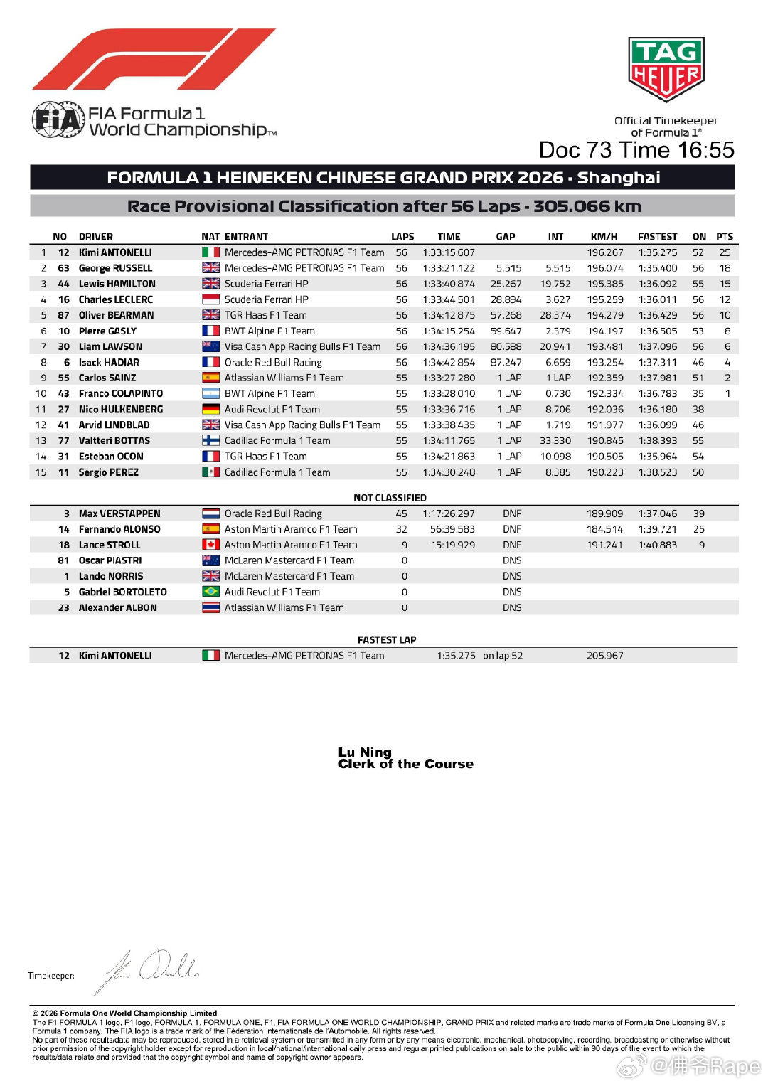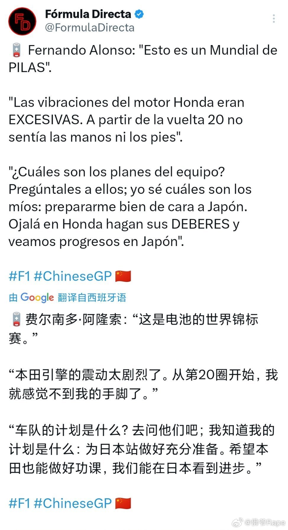 规则一改,聚体翻车现场,连红牛都拉闸,更别说迈凯轮直接退赛,还有很多车队同样都有很多问题🙋但也有例外,比如说奔驰适应就非常快💨断崖式遥遥领先,突然感觉奔驰的时代已经来临。。。🥳安东内利夺F1中国站冠军F1正赛八倍镜看F1出发吧F1F12026F1中国大奖赛有点东西awe2026民间艺术观察