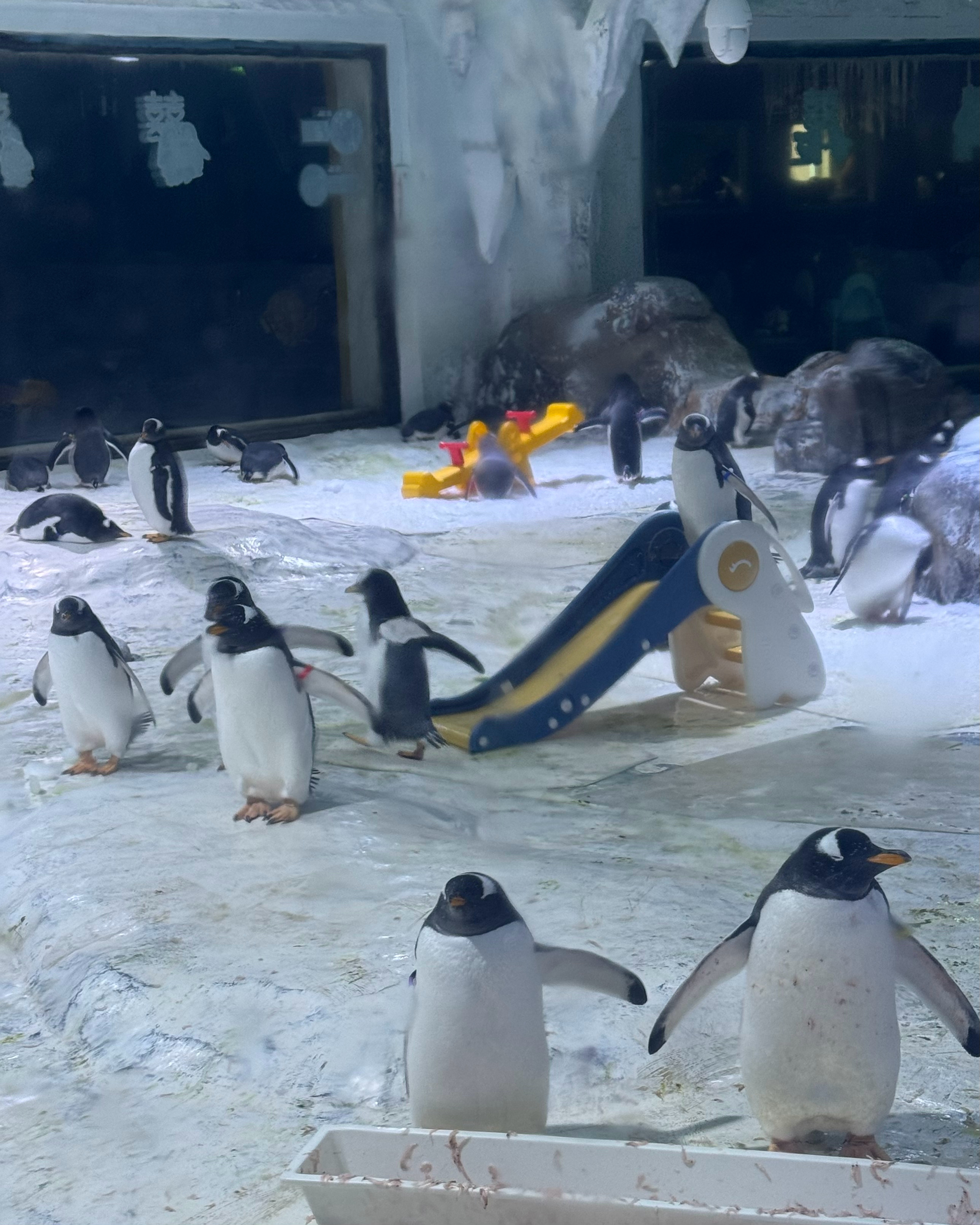 杨幂 今天去逛海洋公园,发现园区给两只企鹅命名为白浅和夜华,还有一个养女叫小灯太有意思了,小桃花火到动物界