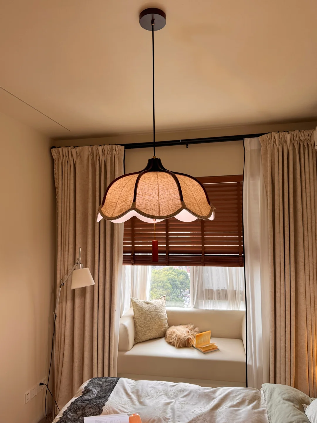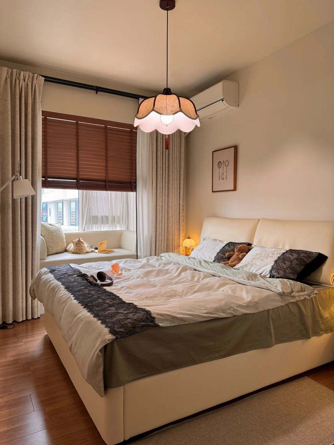 亚麻色 + 木色的组合,真的和卧室太搭了