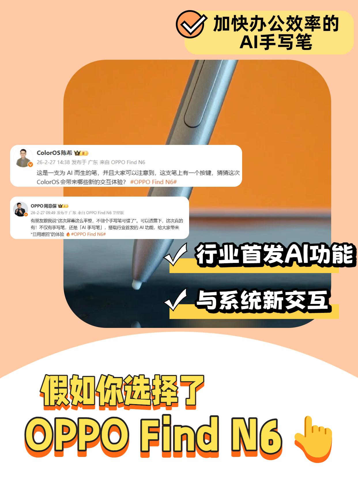 同时配合AI手写笔你还能获得前所未有的手机办公体验,毕竟跟直板屏相比,OPPO Find N6展开能充当平板、折叠起来能充当笔记本,办公体验自然具备了更高的专业度!加上这回还带来了
