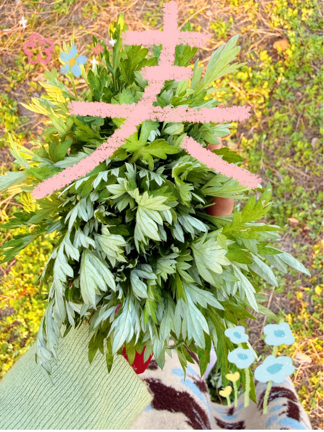 掐了一把艾草尖用来做馒头